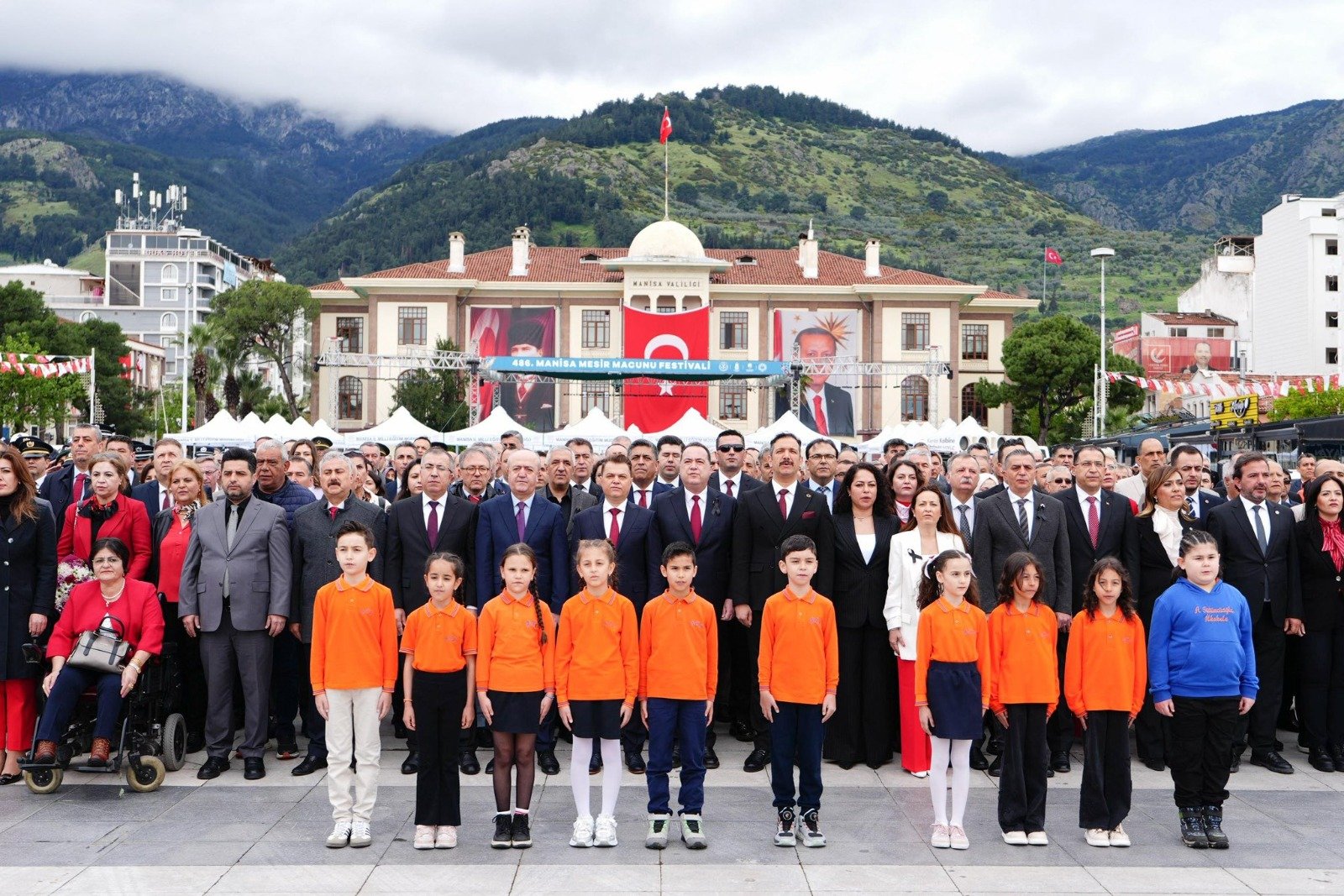 Törende konuşan Manisa İl Milli Eğitim Müdürü Mehmet Uğurelli, sözlerine hayatını kaybeden öğretmen ve öğrencileri anarak başladı. Uğurelli, "Geçtiğimiz günlerde yüreğimizi dağlayan elim hadiselerde hayatını kaybeden evlatlarımızı ve kahraman öğretmenimiz Ayla Kara’yı rahmet ve minnetle yâd ediyorum. Milletimizin başı sağ olsun" dedi. 23 Nisan'ın milli iradenin tecellisi olduğunu vurgulayan Uğurelli, öğretmenliğin kutsallığına dikkat çekerek şu ifadeleri kullandı: "Geçtiğimiz günlerde yaşanan o elim hadise bize bir kez daha göstermiştir ki; bu topraklarda öğretmenlik, yalnızca bir meslek değildir. Gerektiğinde bir siper, gerektiğinde bir fedakarlık, gerektiğinde bir adanmışlık destanıdır. Ayla öğretmen bu hakikati sözle değil, hâl diliyle, hayatıyla bizlere anlatmıştır. Gazi Mustafa Kemal Atatürk’ün bu bayramı çocuklara armağan etmesi, bir gelecek hayalinin ifadesidir. Gelecek çok güzel gelecek." ifadelerini kullandı.