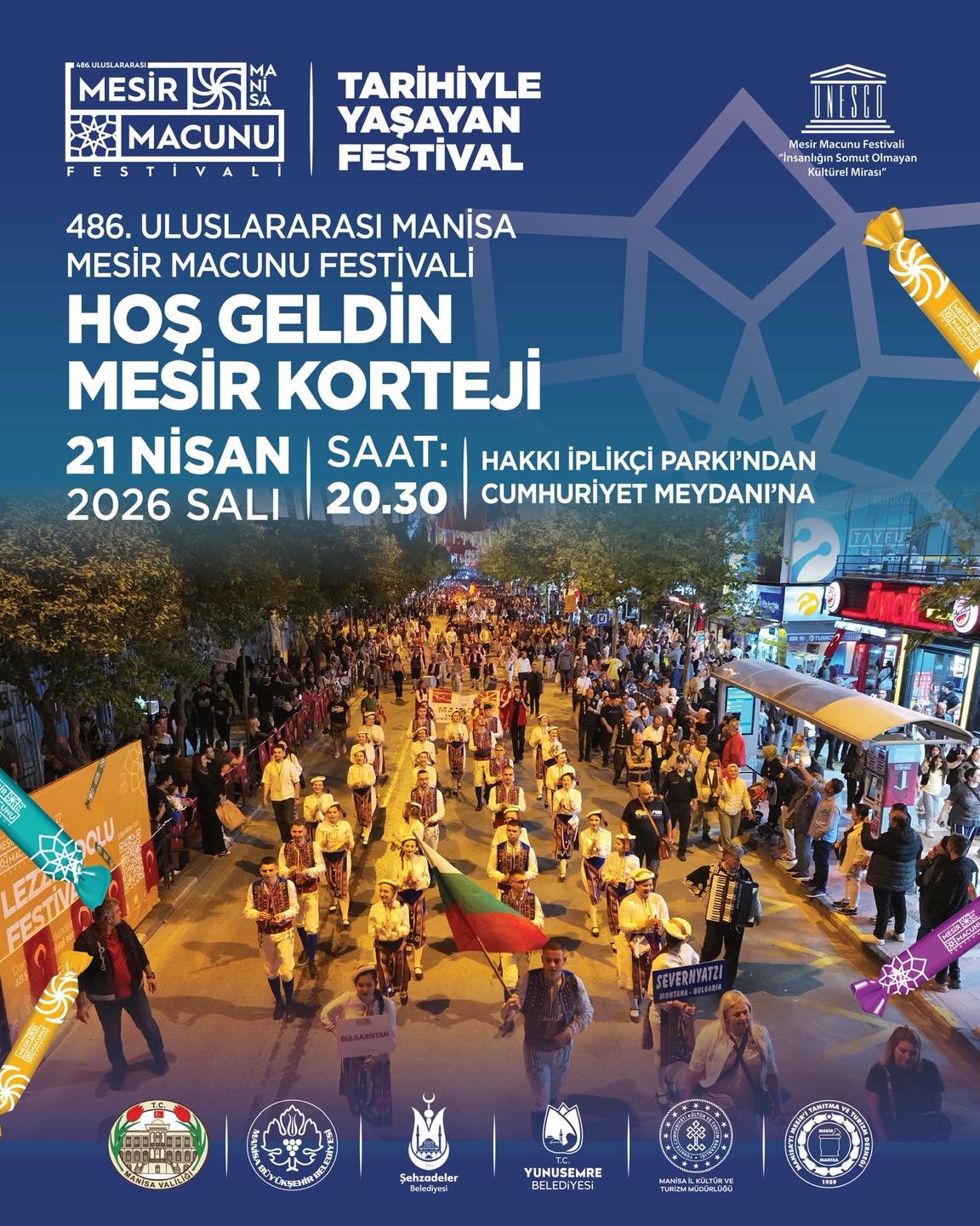 Manisa’nın köklü geleneği olan Uluslararası Mesir Macunu Festivali, bu yıl 486. kez kapılarını açıyor. Festivalin heyecanı, bu akşam düzenlenecek olan görkemli kortej ile tüm şehre yayılacak.