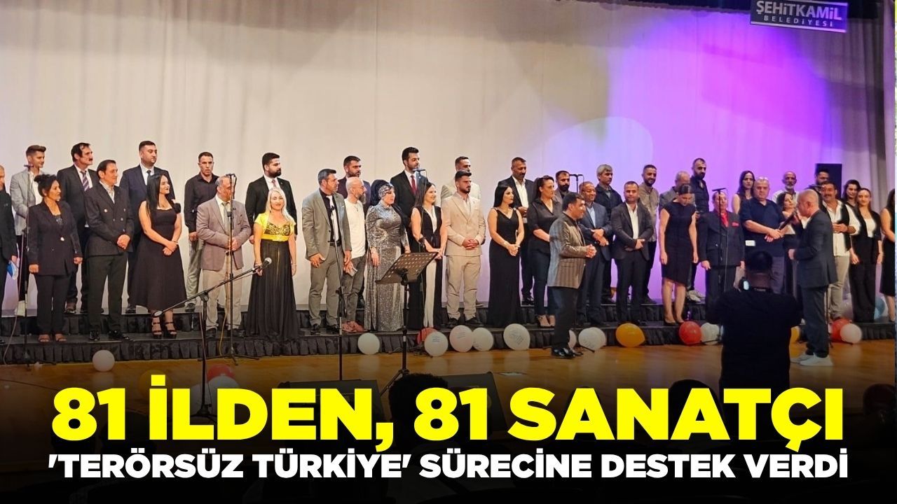 MÜZSAN tarafından düzenlenen 'Terörsüz Türkiye Yolunda Mozaik Türkiye'nin Kardeşliği' projesi çerçevesinde Gaziantep buluşan 81 ilden 81 sanatçı, hazırlanan şarkıyı koro halinde hep bir ağızdan seslendirdi. MÜZSAN Genel Başkan Onurlu tarafından hazırlanan ve 'bu vatan, bu bayrak bizim, kardeşliktir cümle sözüm, terörsüz Türkiye sözüm, huzur bulsun Türkiye'miz, Türk'ün Kürt'ün sevdası bir, evladı bir, balası bir, aldığımız havası bir, huzur bulsun Türkiye'miz' sözlerini içeren şarkı ile kardeşlik mesajı verdi.
