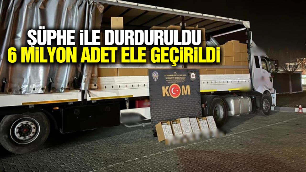Edinilen bilgilere göre, Afyonkarahisar İl Emniyet Müdürlüğü’ne bağlı ekipler Çay ilçesinde yol kontrolü gerçekleştirdi. Kontrolde şüphe üzerine durdurulan bir tırda aramam yapıldı. Aramada koliler içerisinde aramada 6 milyon adet boş makaron ele geçirildi. Olayın ardından bir kişinin gözaltına alındığı bildirildi.
