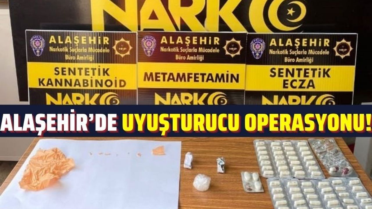 Manisa Narkotik Suçlarla Mücadele Şube Müdürlüğü Alaşehir Büro Amirliği ekiplerince yapılan sokak çalışmaları kapsamında Barış Mahallesinde N.E. (33) isimli şahsın yapılan ikamet aramasında 1 adet 12x8 cm, 1 adet 2.5x2 cm, 1 adet 0.5x0.5 cm ve 5 adet 0.1x1 cm olmak üzere toplan 8 parça halinde turuncu renkli sentetik kannobinoid maddesi emdirilmiş peçete (473 içimlik), 2.95 gram, 0.43 gram, 0.34 gram olmak üzere 3 parça metamfetamin maddesi, 70 adet 150 mg sentetik ecza hapı, 2 adet 300 mg sentetik ecza hapı, 3 adet sentetik ecza hapı olmak üzere toplam 75 sentetik ecza hapı ile suç geliri olduğu tespit edilen 47 bin 650 TL para ele geçirildi. N.E. isimli şahıs emniyetteki sorgusundan sonra çıkarıldığı mahkeme tarafından tutuklandı.
