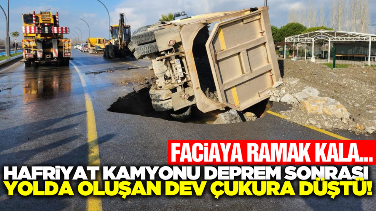 Edinilen bilgiye göre, Balıkesir'in Edremit ilçesi Ülkü Yolu üzerinde hareket eden 26 VF XXX plakalı hafriyat kamyonu, yolun çökmesi sonucu oluşan çukura düştü. Kaza sırasında araç yan yattı.