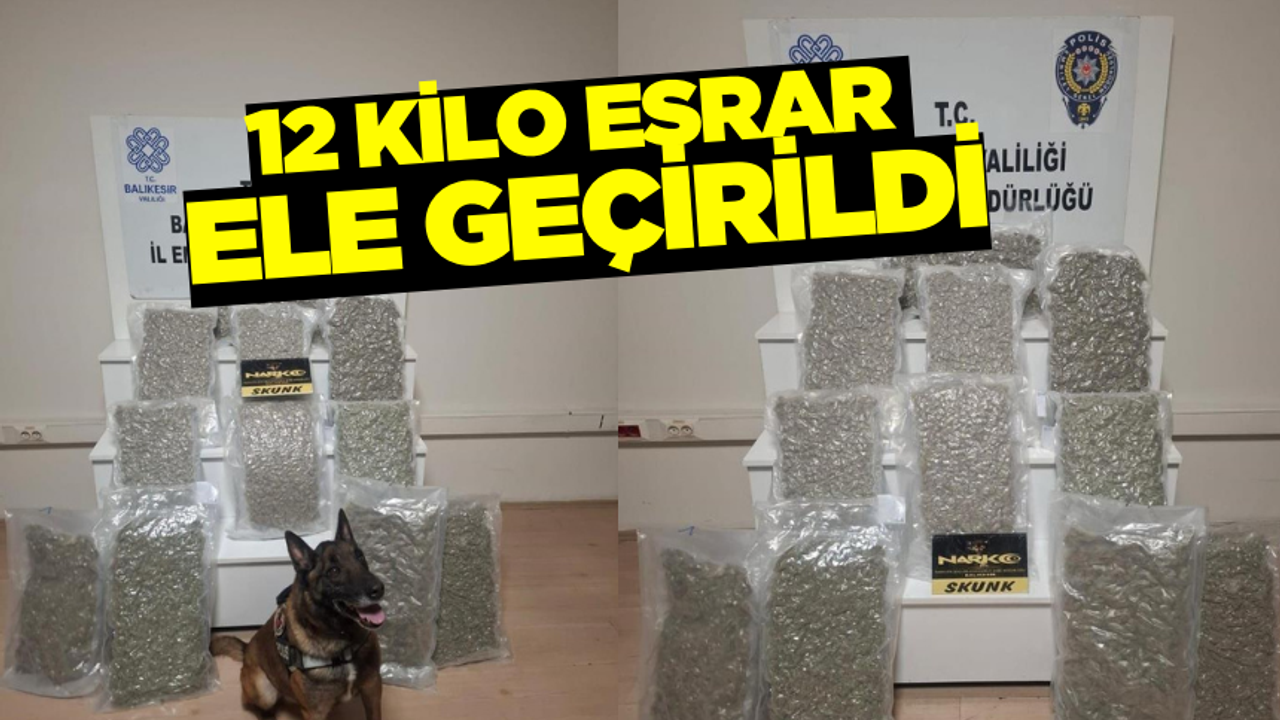 Balıkesir İl Emniyet Müdürlüğü Narkotik Suçlarla Mücadele ekipleri sabah saatlerinde uyuşturucu operasyonu gerçekleştirdi. Yapılan operasyona narkotik dedektör köpeği Yaşa’nın da katıldığı çalışmada, 11 paket halinde 12 kilo 870 gram skunk/esrar maddesi ele geçirildi.