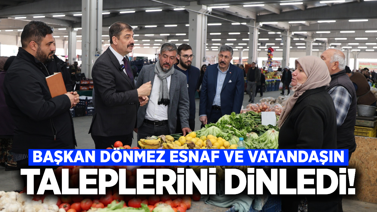 Tuhafiye, manav ve müstahsil pazarı bölümlerini tek tek gezen Başkan Dönmez, esnafa hayırlı işler dileklerini iletti. Esnafın ve alışverişe gelen vatandaşların yoğun ilgisiyle karşılaşan Dönmez, kendisine iletilen sorunları ve talepleri dikkatle dinleyerek notlar aldırdı.