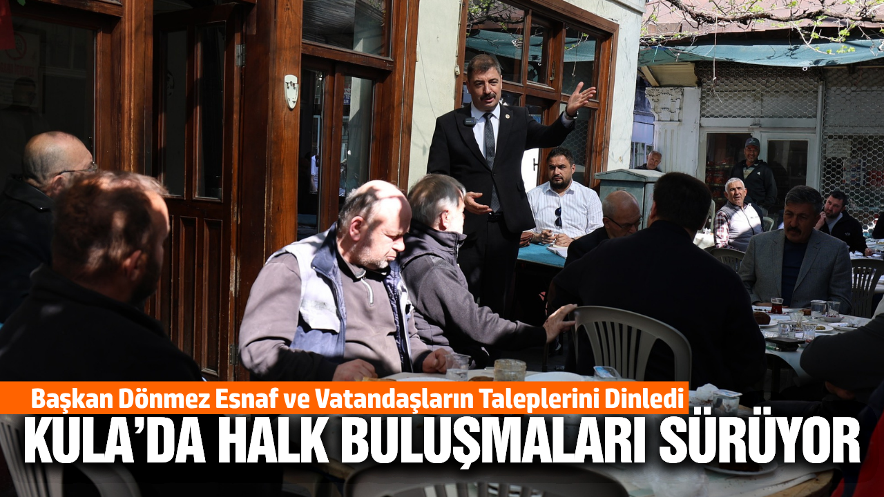 Mehmet Yılmaz’a ait kahvehanede gerçekleşen programa, Kula Belediye Başkanı Hikmet Dönmez’in yanı sıra Esnaf ve Sanatkarlar Kredi Kefalet Kooperatifi Başkanı Ali Yiğen de katıldı. Esnafların ve vatandaşların yoğun ilgi gösterdiği buluşmada, Kula’nın mevcut sorunları ve çözüm önerileri masaya yatırıldı.