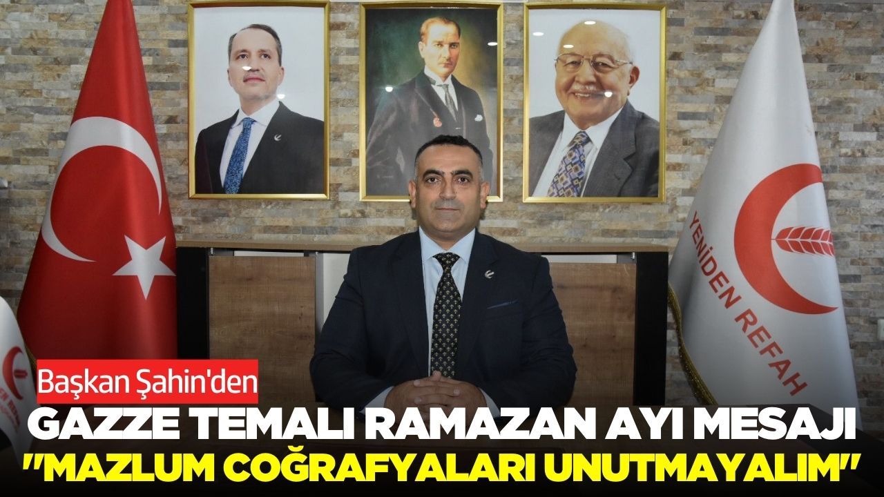 Ramazan ayına karışık duygularla girildiğini belirten Yeniden Refah Partisi Şehzadeler İlçe Başkanı İbrahim Şahin, "Evveli rahmet, ortası mağfiret, sonu ise cehennem azabından kurtuluş olan mübarek Ramazan-ı Şerif’e, kalplerimizde hem bir huzur hem de derin bir hüzünle kavuşuyoruz" dedi.