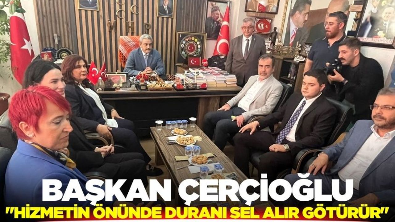 MHP Aydın İl Başkanlığına iade-i ziyarette bulunan Başkan Çerçioğlu, tek amaçlarının Aydın’a hizmet etmek olduğunu ve engel olmak isteyenlere rağmen projelerini hayata geçireceklerini belirterek, "Hizmetin önünde duranı sel alır götürür" diye söyledi.