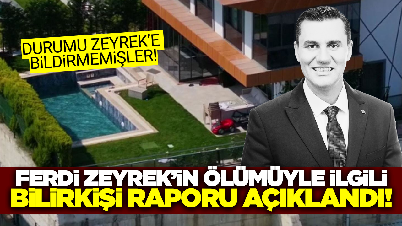 Raporda, Başkan Zeyrek'in olay günü ikizleriyle girdiği havuzdaki suyun bulanıklığından rahatsız olduğu ve üstünü değiştirdikten sonra makine dairesine girmek üzereyken elektrik akımına kapılarak yaşamını yitirdiği anlatıldı.