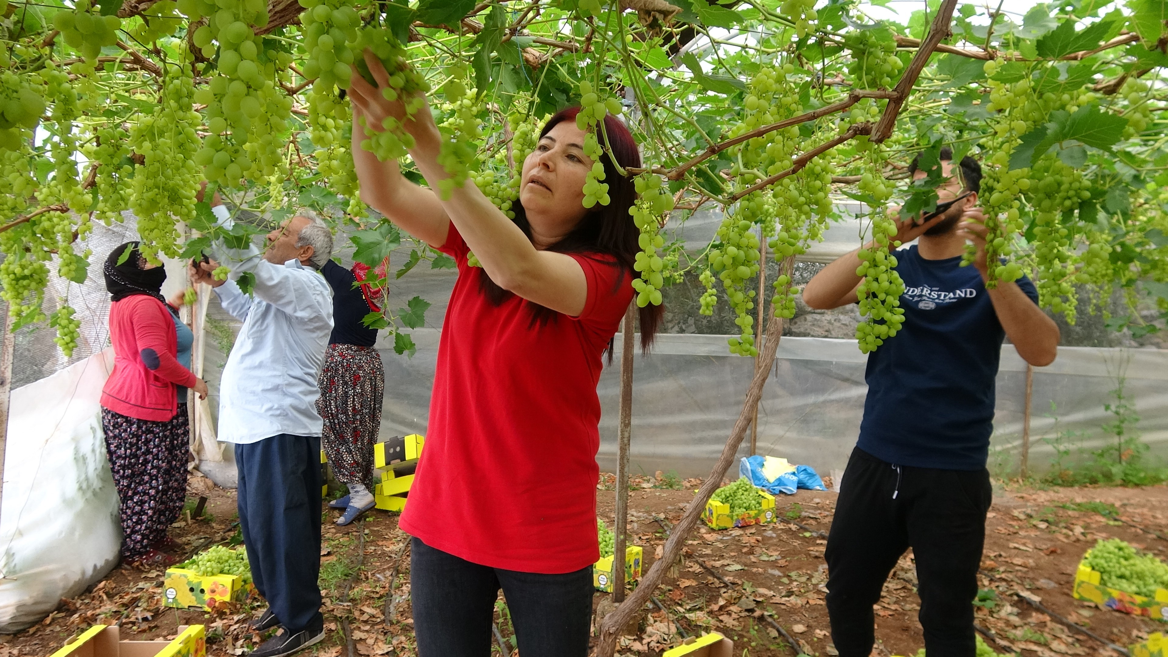 Sabahın erken saatlerinden itibaren örtü altında hasat yapan işçiler de, üzümlerin özenle kesilip paketlenerek alıcılara gönderildiğini söyledi.