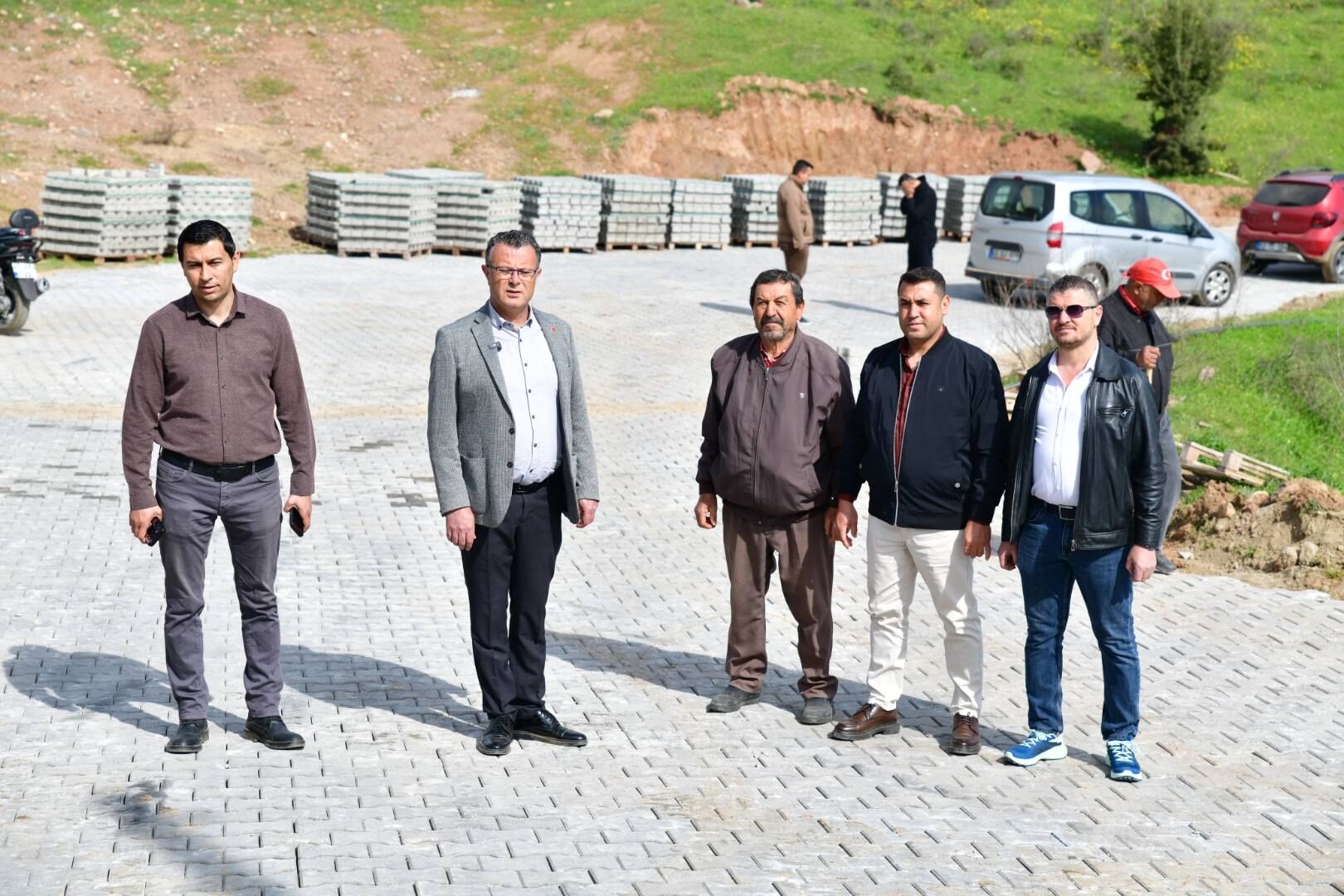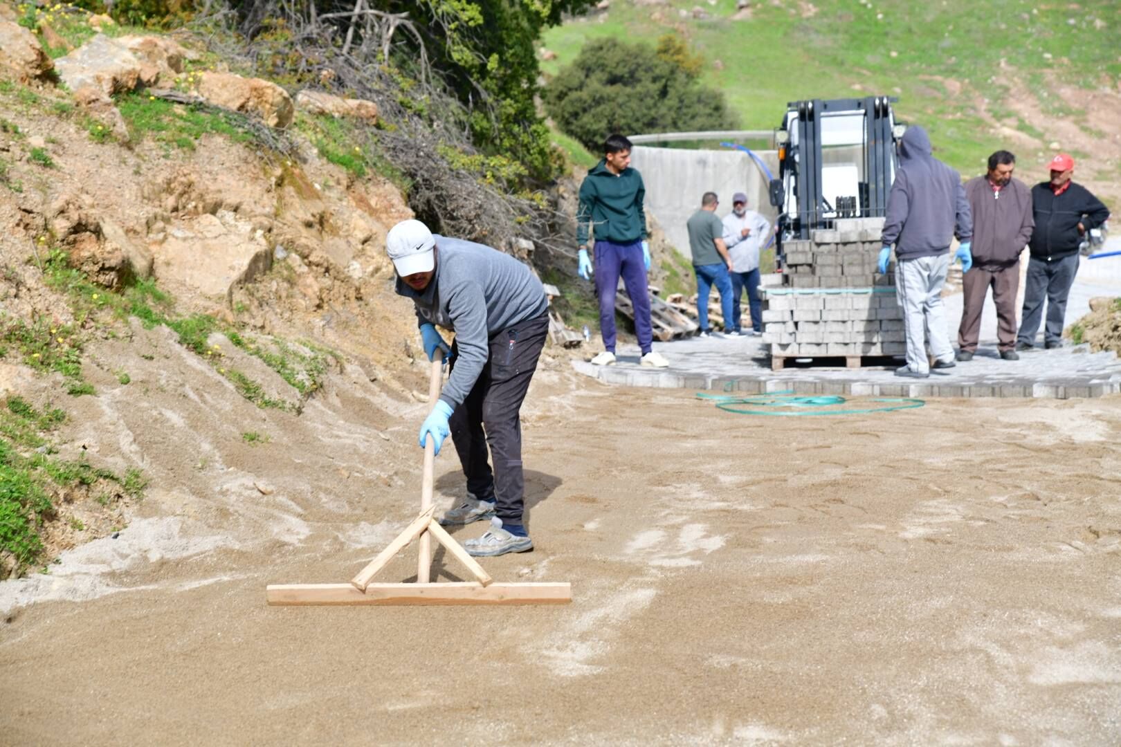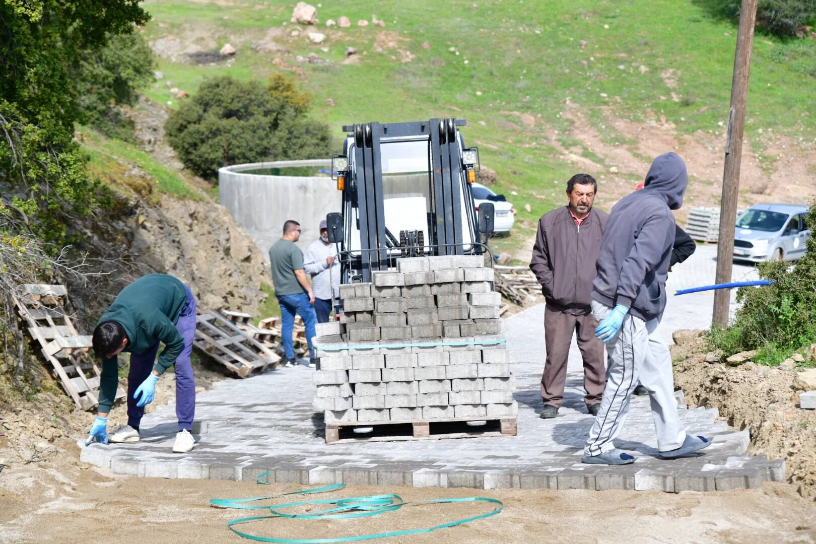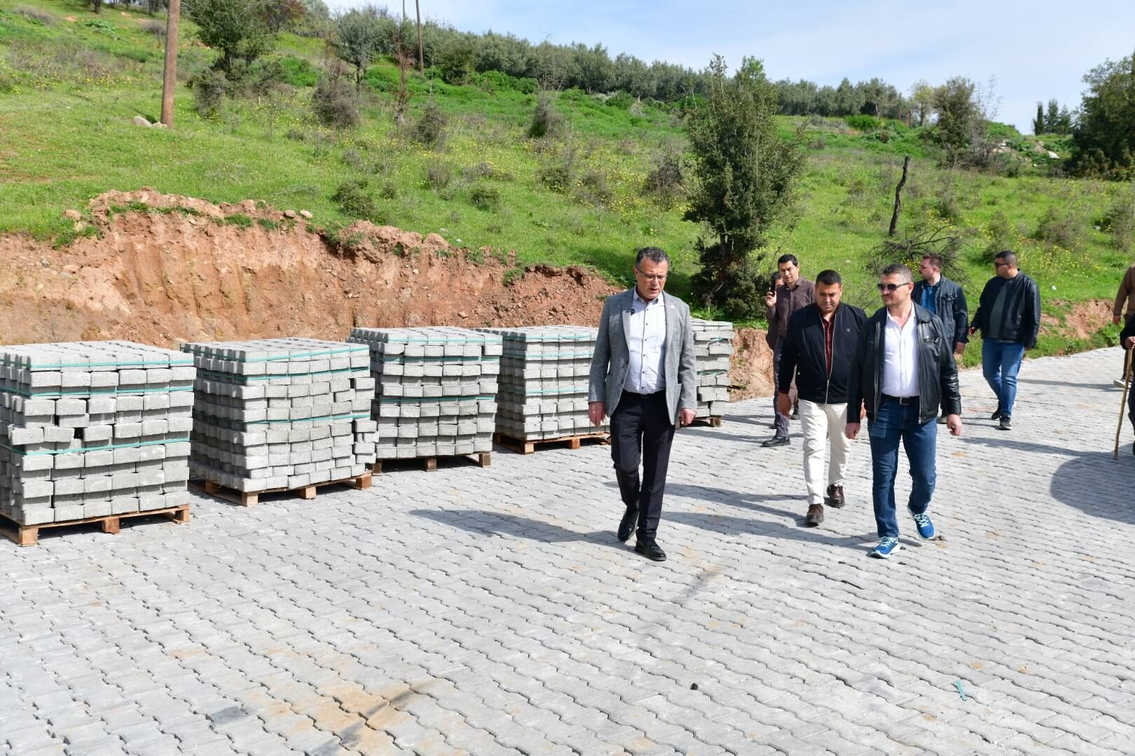 Başkan Öküzcüoğlu, güne Çamdede Mezarlık Yolu’nda başlatılan kilit parke taşı döşeme çalışmalarını yerinde inceleyerek başladı.