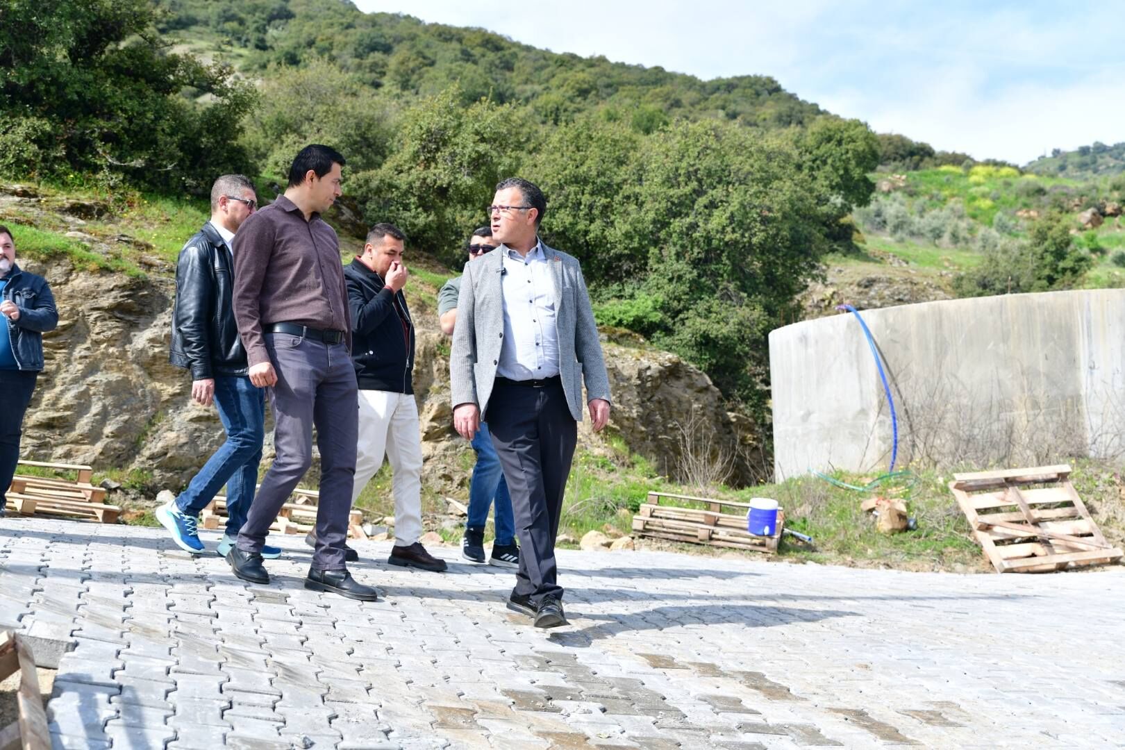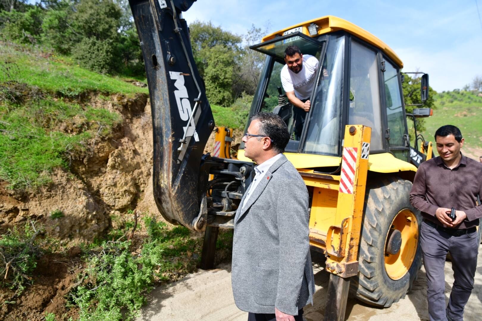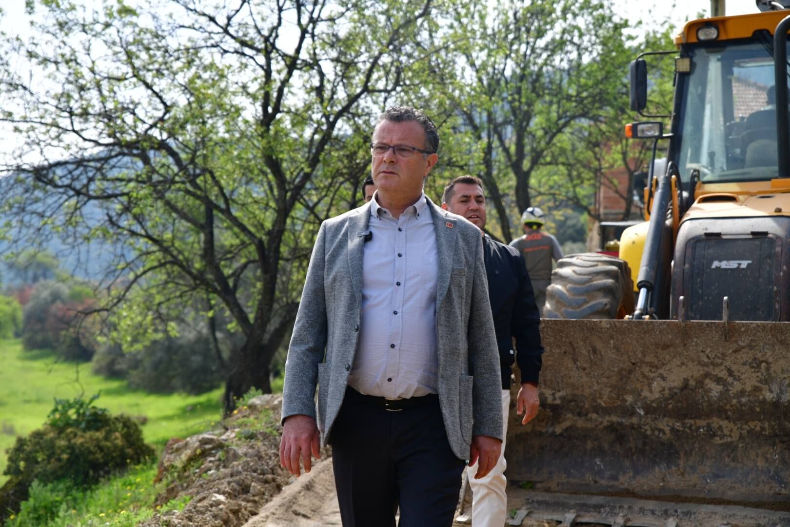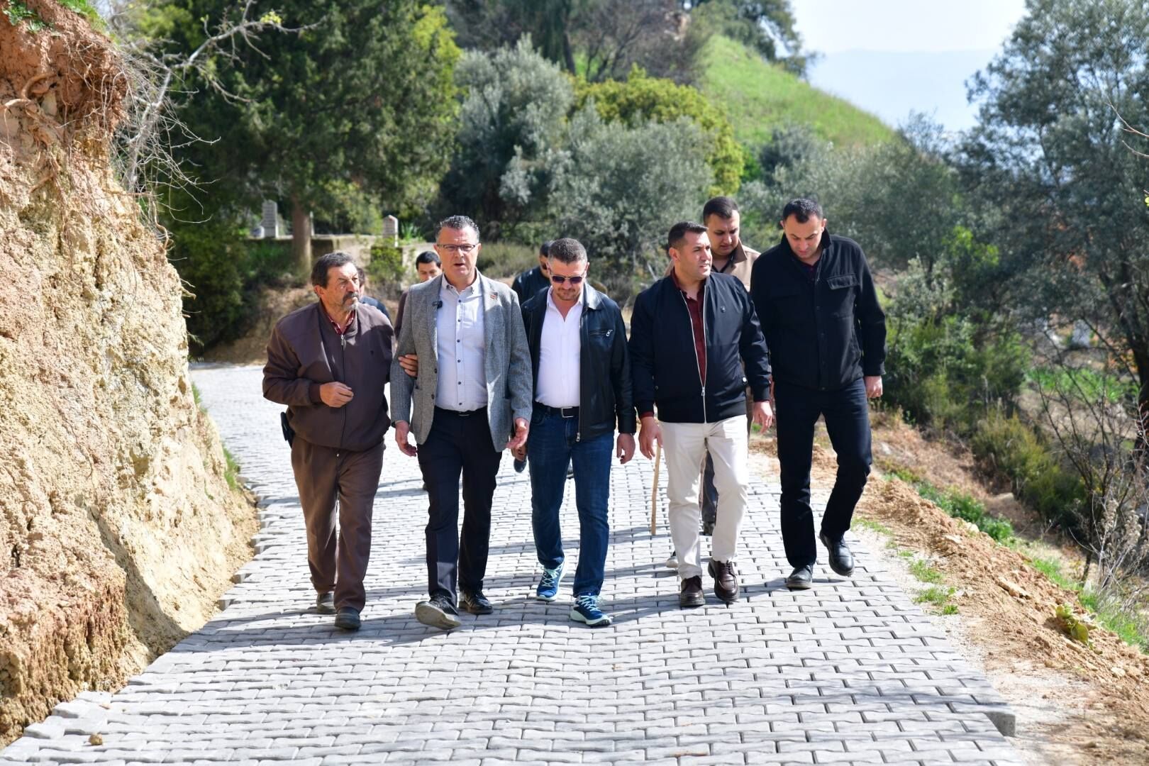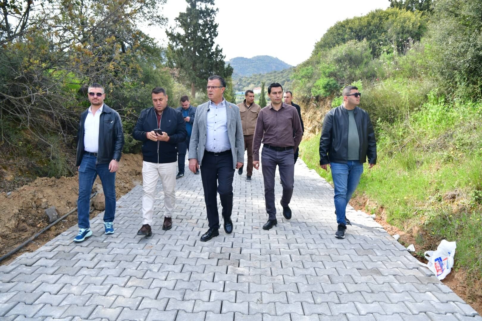 Başkan Öküzcüoğlu, güne Çamdede Mezarlık Yolu’nda başlatılan kilit parke taşı döşeme çalışmalarını yerinde inceleyerek başladı.
