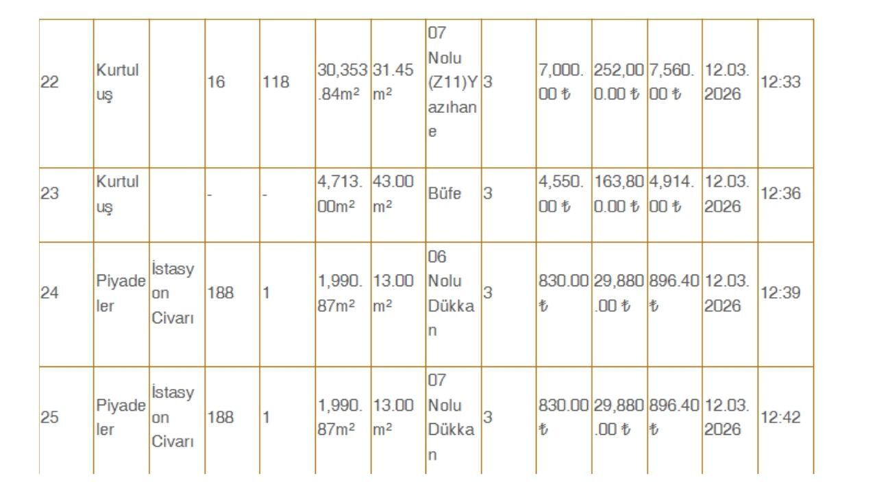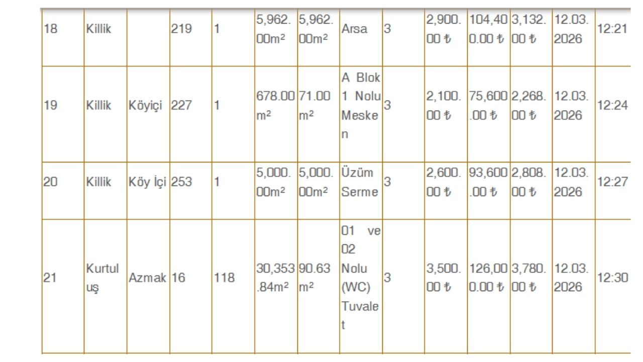 Başvuru Süresi: Taliplilerin, ihale tarihinden 1 gün önce saat 17:30’a kadar geçici teminat makbuzları ve gerekli evraklarla birlikte Emlak ve İstimlak Müdürlüğü’ne müracaat etmeleri gerekmektedir.