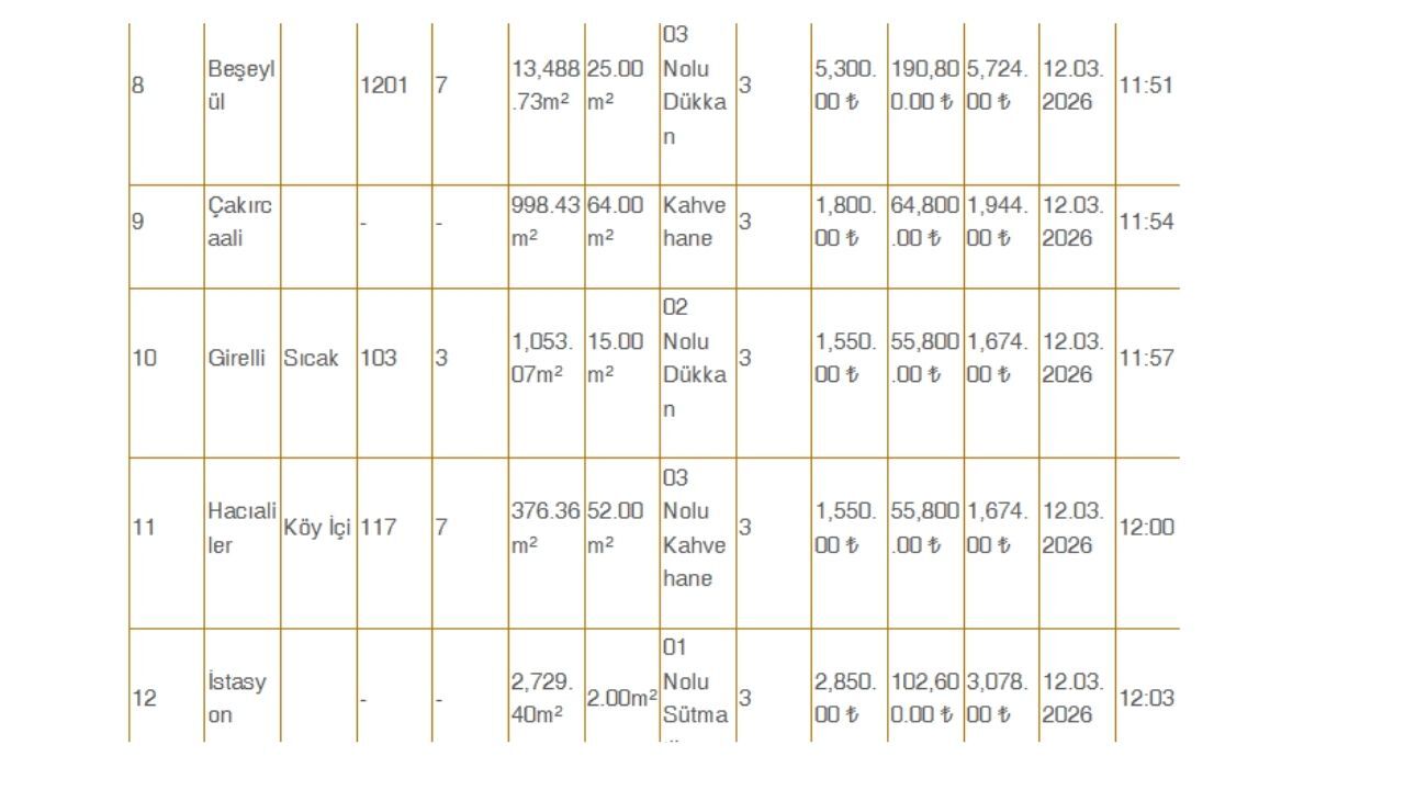 Alaşehir Belediyesi'nin kiraya vereceği taşınmazlar (7-12)