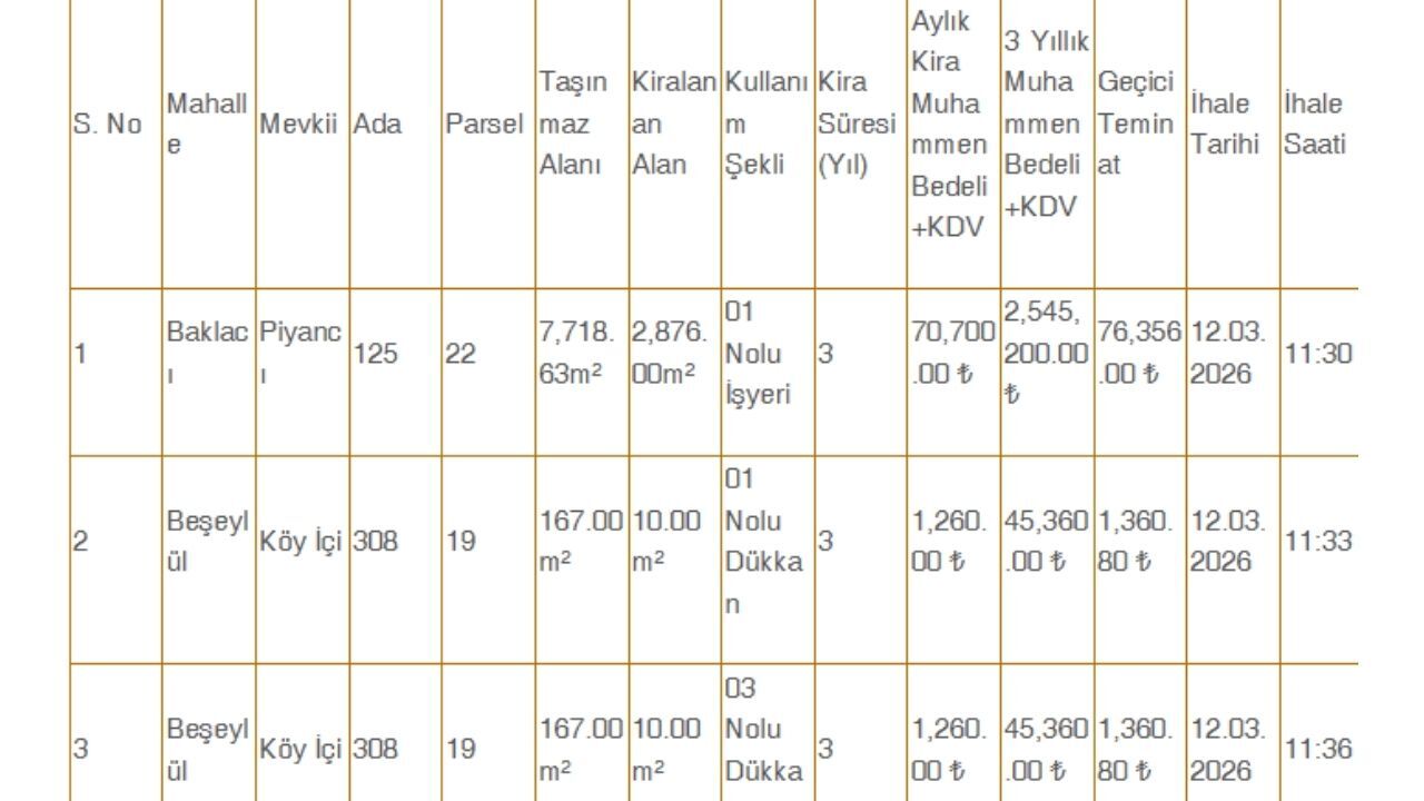 Alaşehir Belediyesi'nin kiraya vereceği taşınmazlar (12-17)