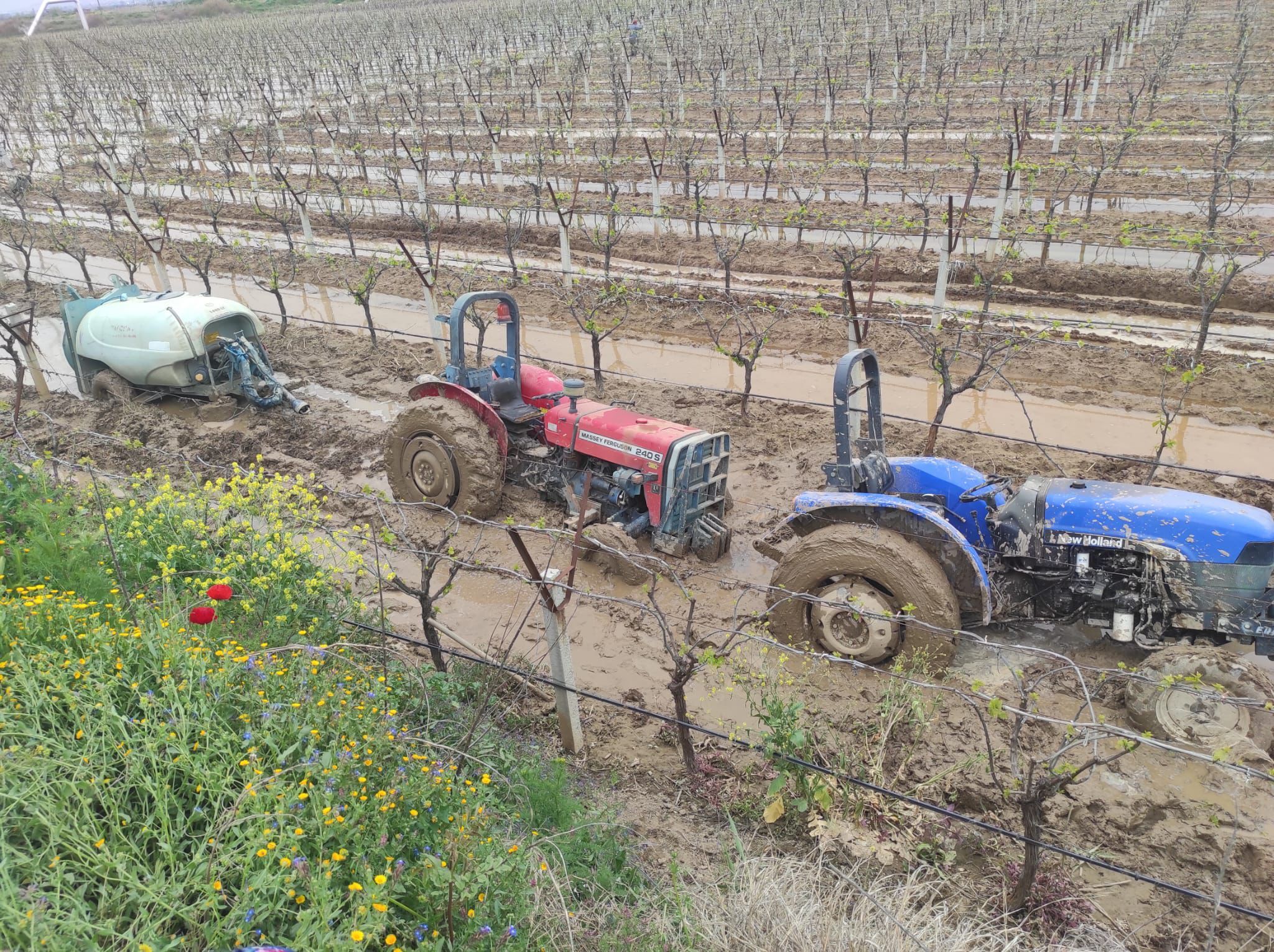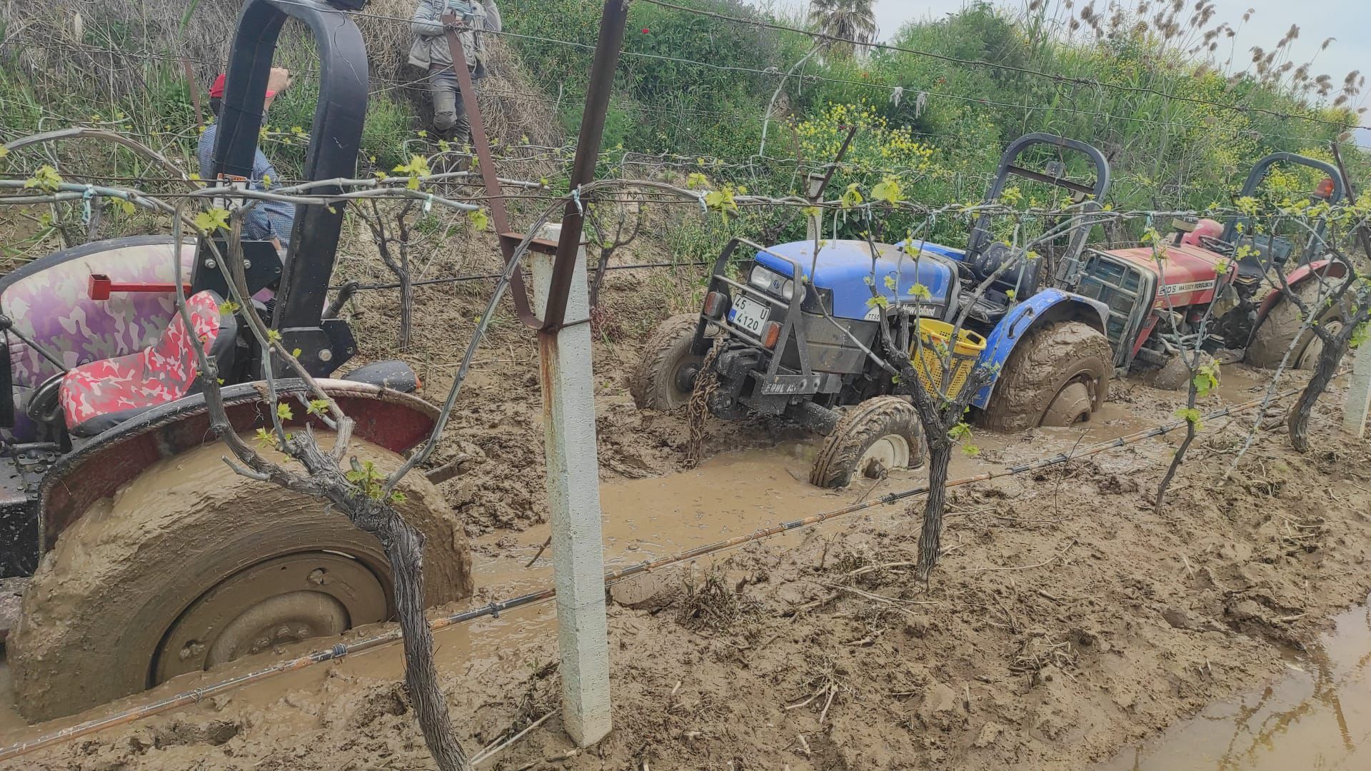 Çamurla kaplanan arazilerde mahsur kalan üreticilerin yardımına yine diğer çiftçiler yetişti.