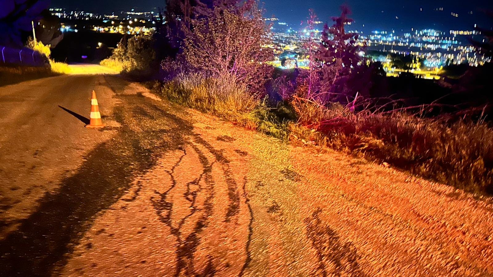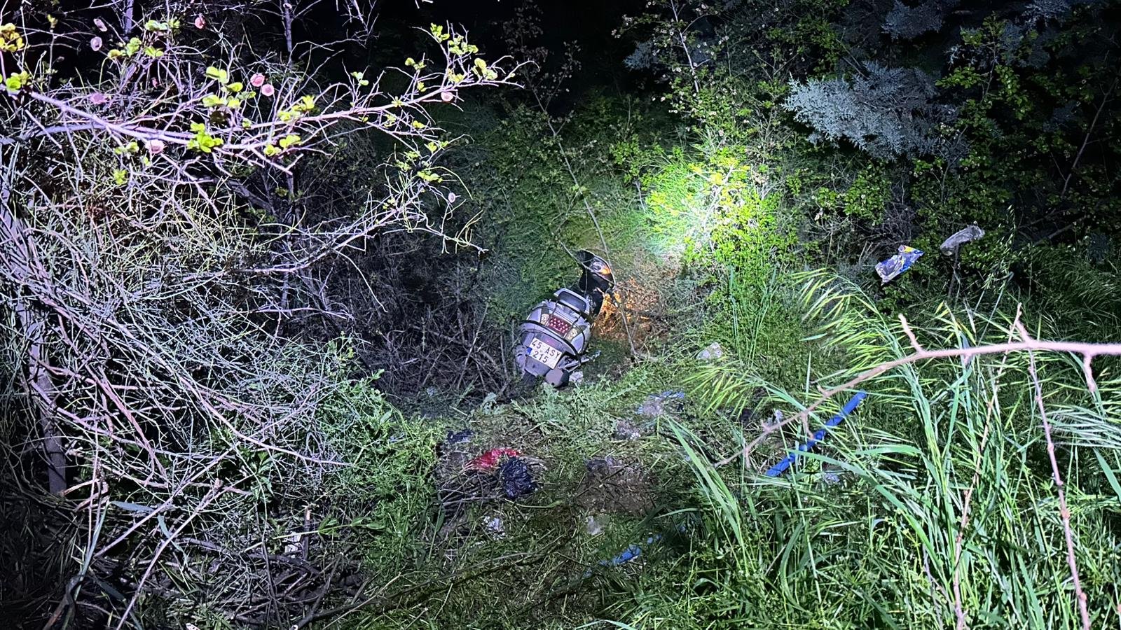Kontrolden çıkan motosiklet Evrenli Mahallesi mevkiinde uçuruma yuvarlandı.
