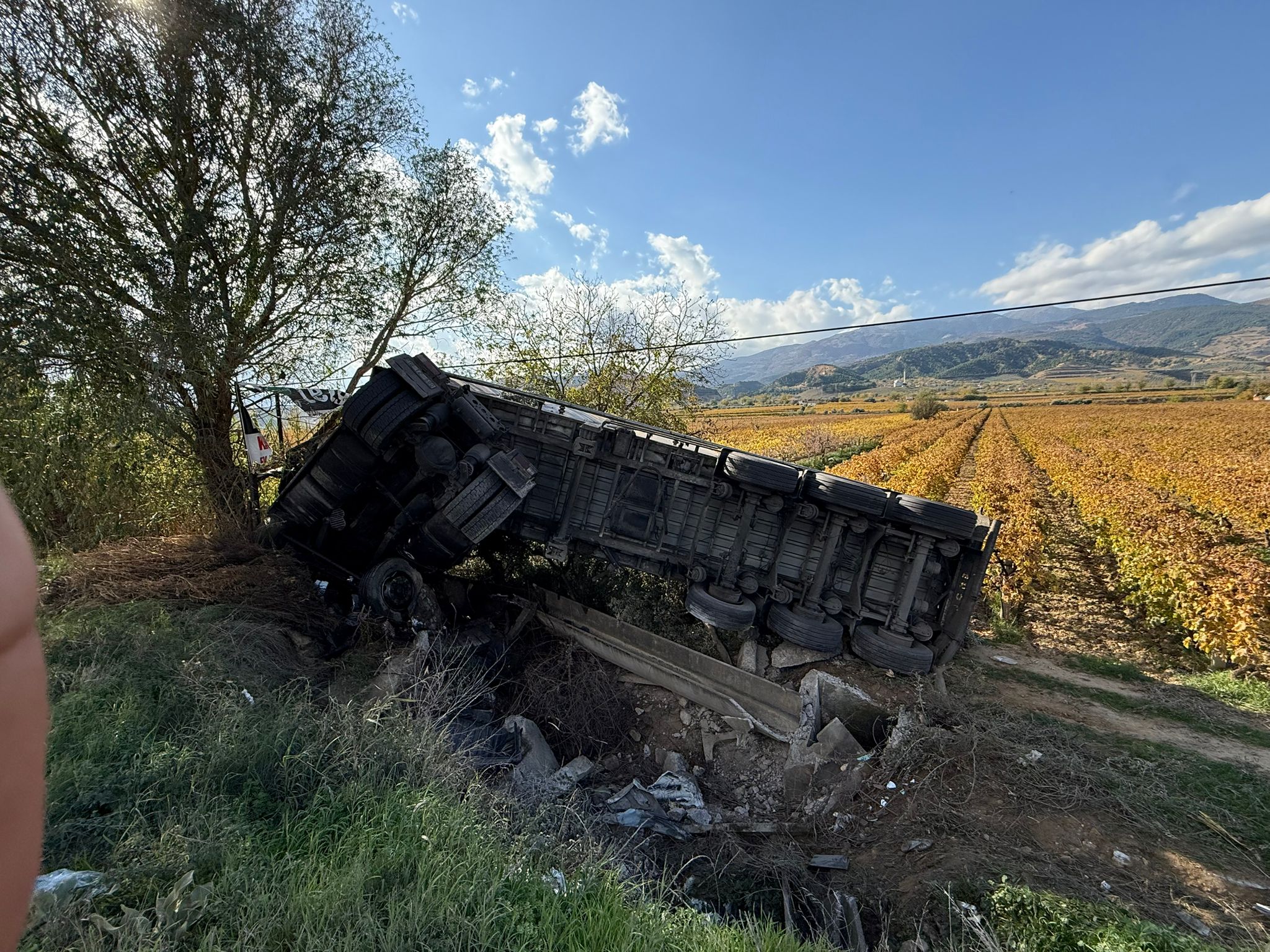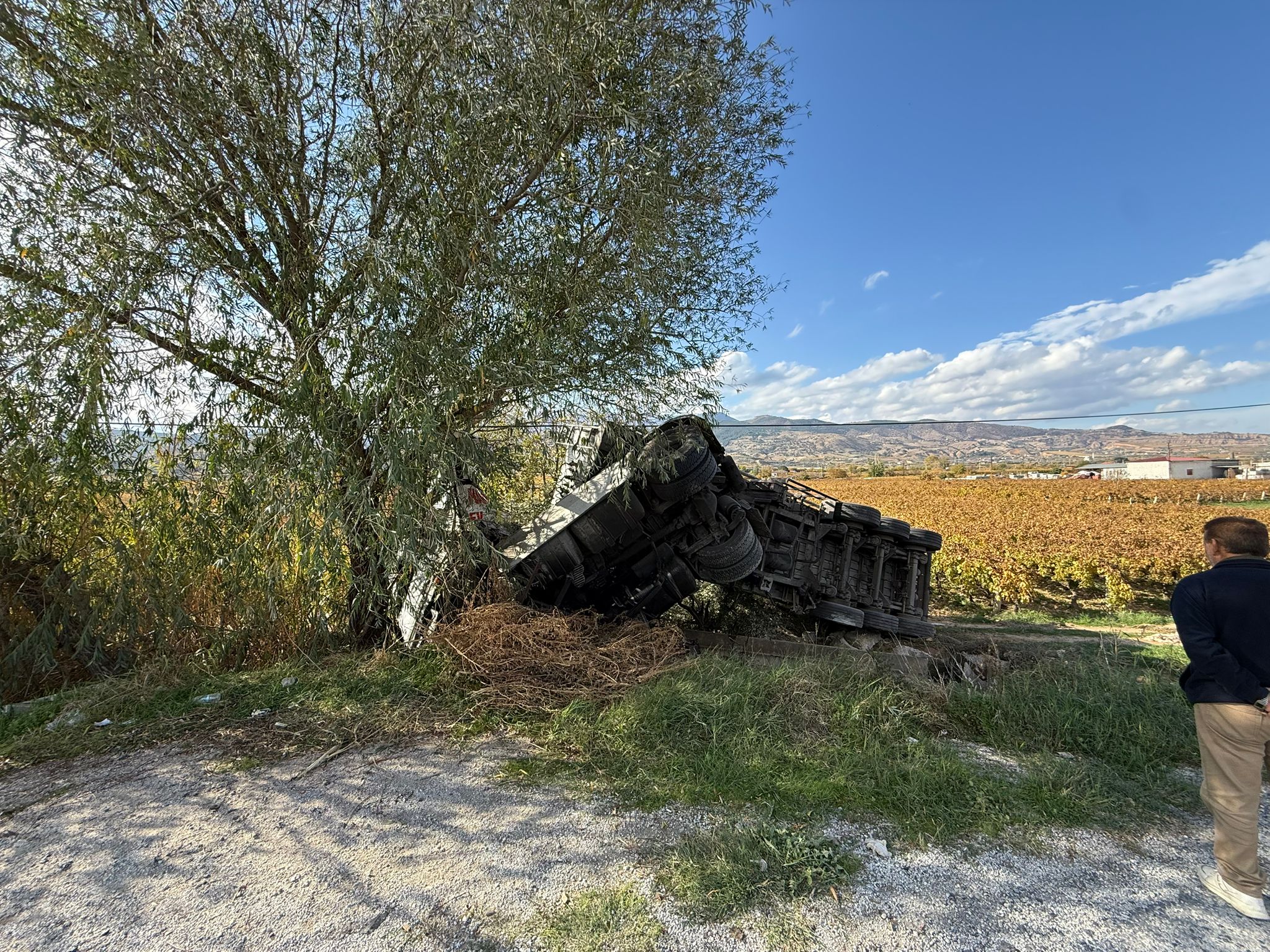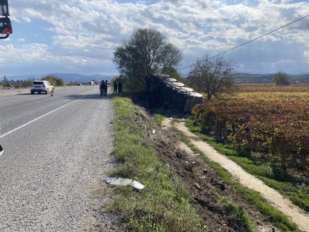 Kontrolden çıkan tanker, yoldan çıkarak şarampole yuvarlandı ve bölgedeki üzüm bağlarına uçtu.