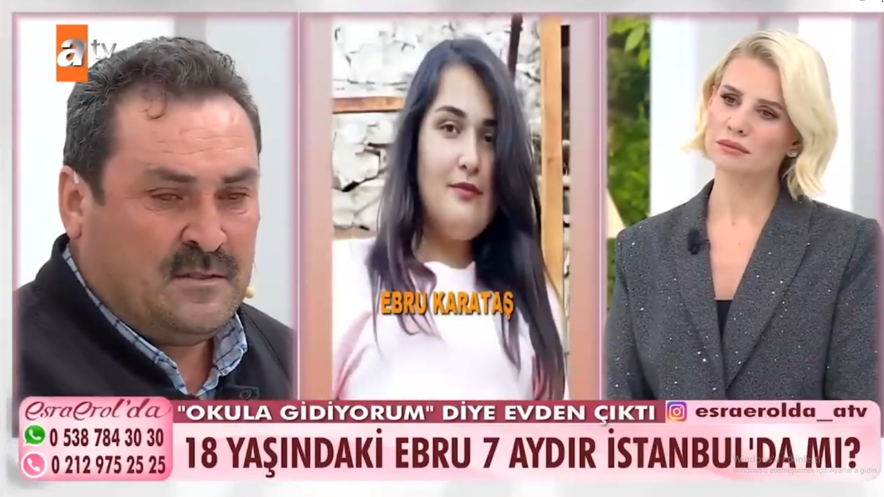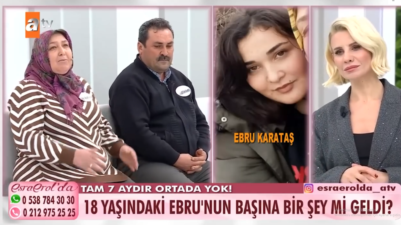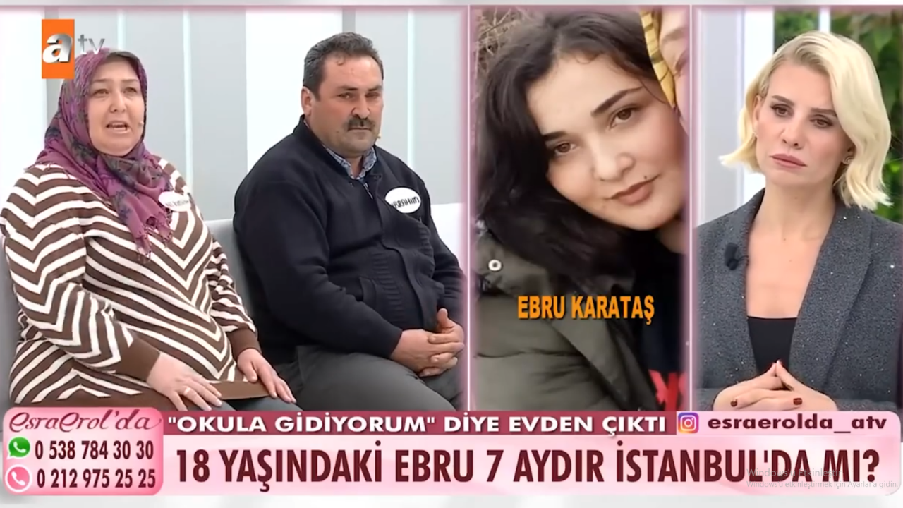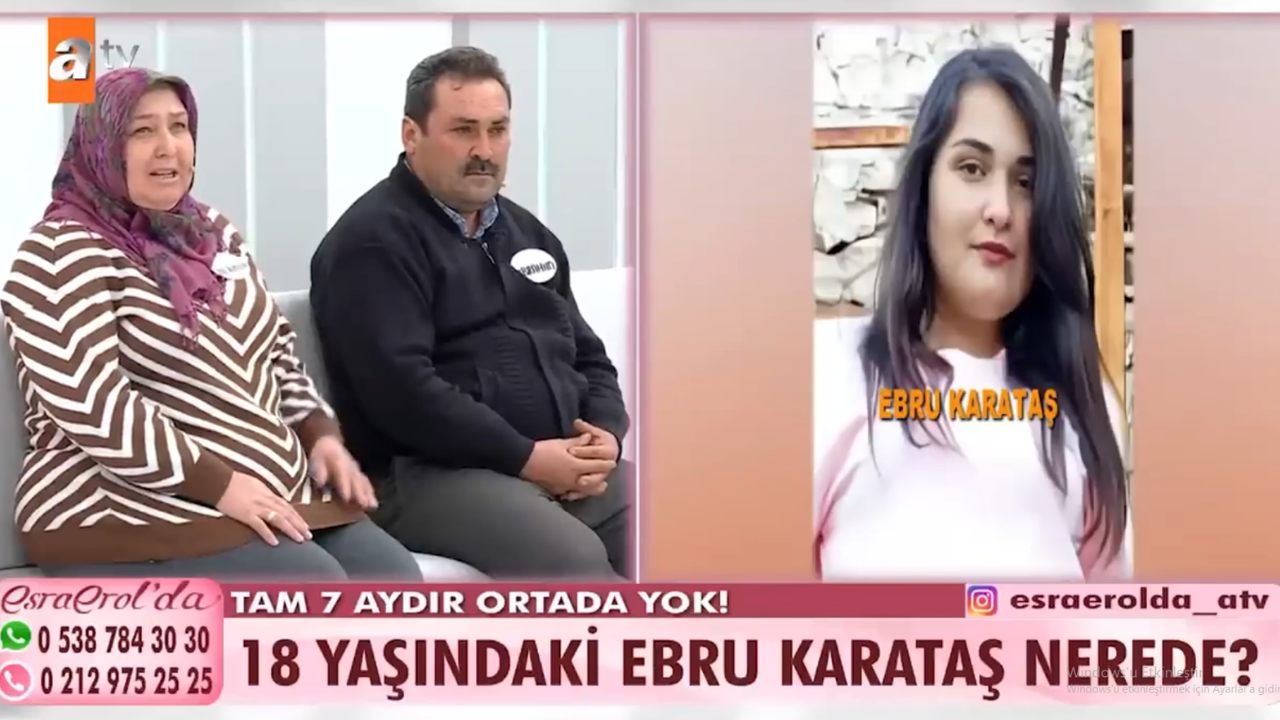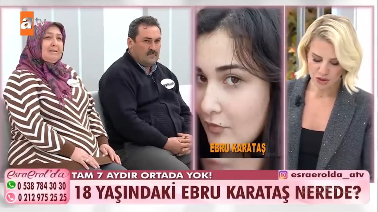 Ebru Karataş, okulun kapanmasına 3 gün kala babasına attığı mesajla kayıplara karışan 18 yaşındaki Ebru Karataş’ın ailesi, kızlarının bulunması için Esra Erol'da programına başvurdu.