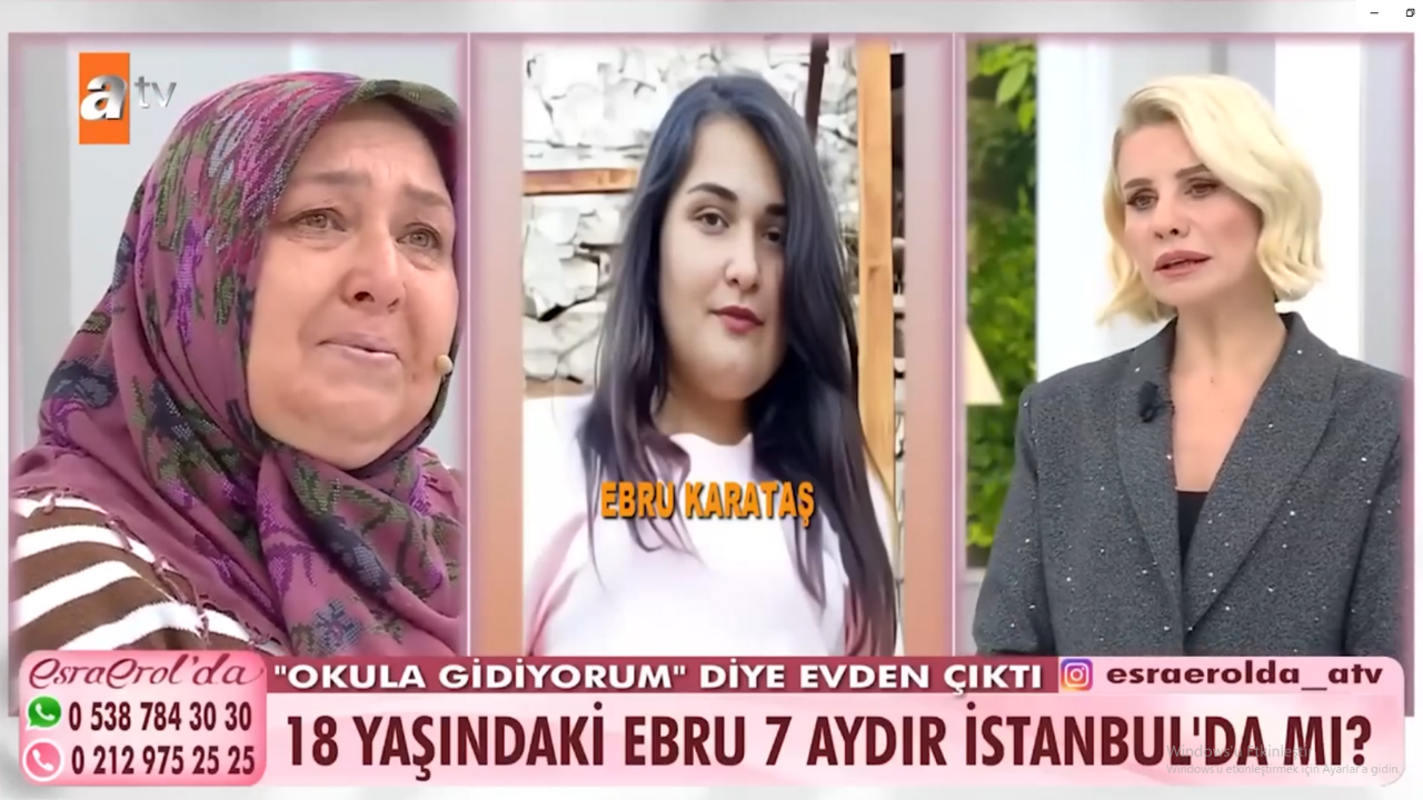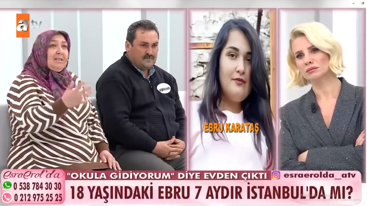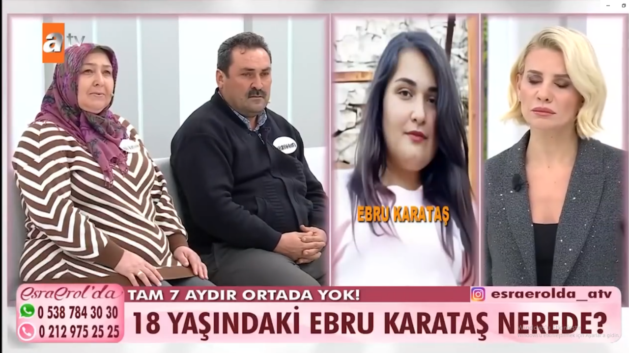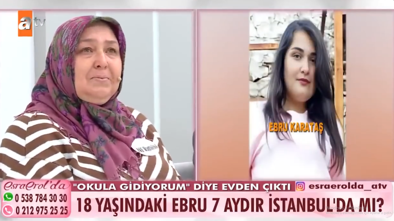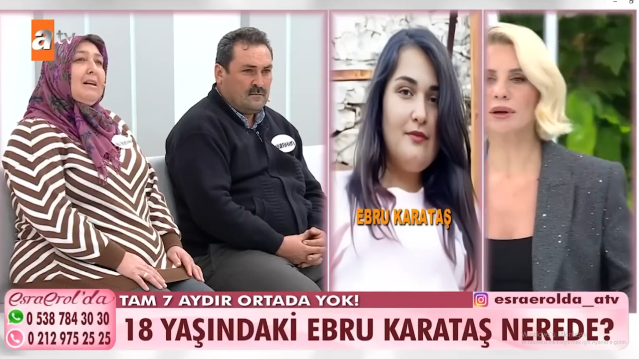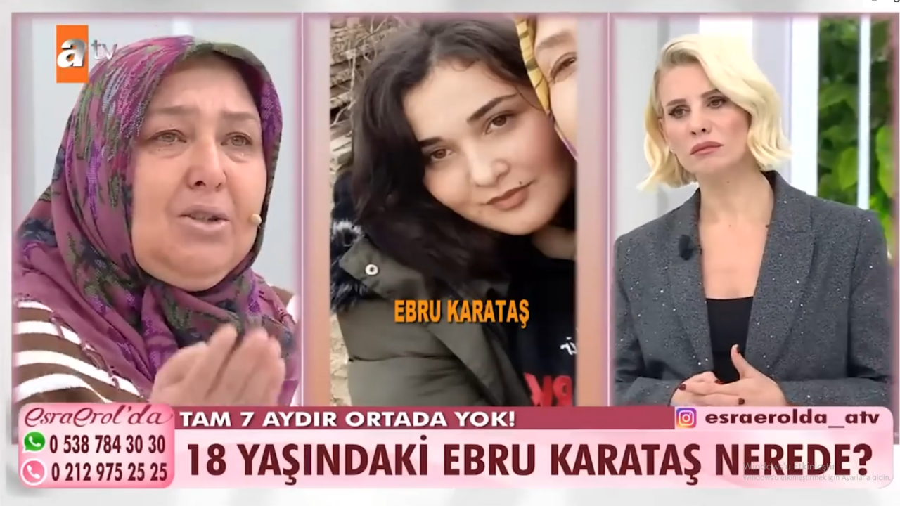 Ebru Karataş, okulun kapanmasına 3 gün kala babasına attığı mesajla kayıplara karışan 18 yaşındaki Ebru Karataş’ın ailesi, kızlarının bulunması için Esra Erol'da programına başvurdu.