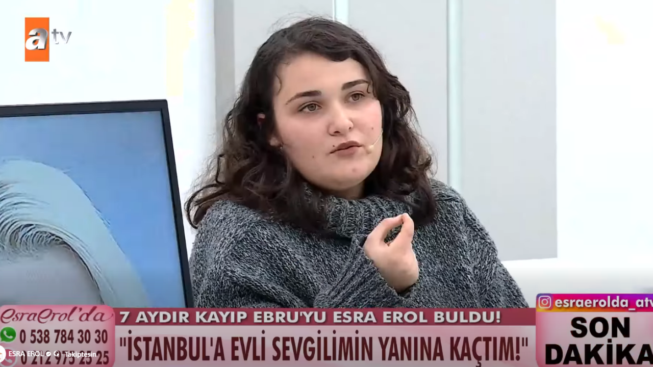 Esra Erol, , "Ailenin baskısından kaçarken, evli ve aranan bir adamın sorumluluğunu almayı nasıl kabul ediyorsun?" sorusuna Ebru'nun verdiği yanıt pes dedirtti. Tüm bu gerçekleri bildiğini ifade eden genç kız, bu durumun kendisi için bir sorun teşkil etmediğini ve Alaşehir'e asla dönmeyeceğini yineledi.
