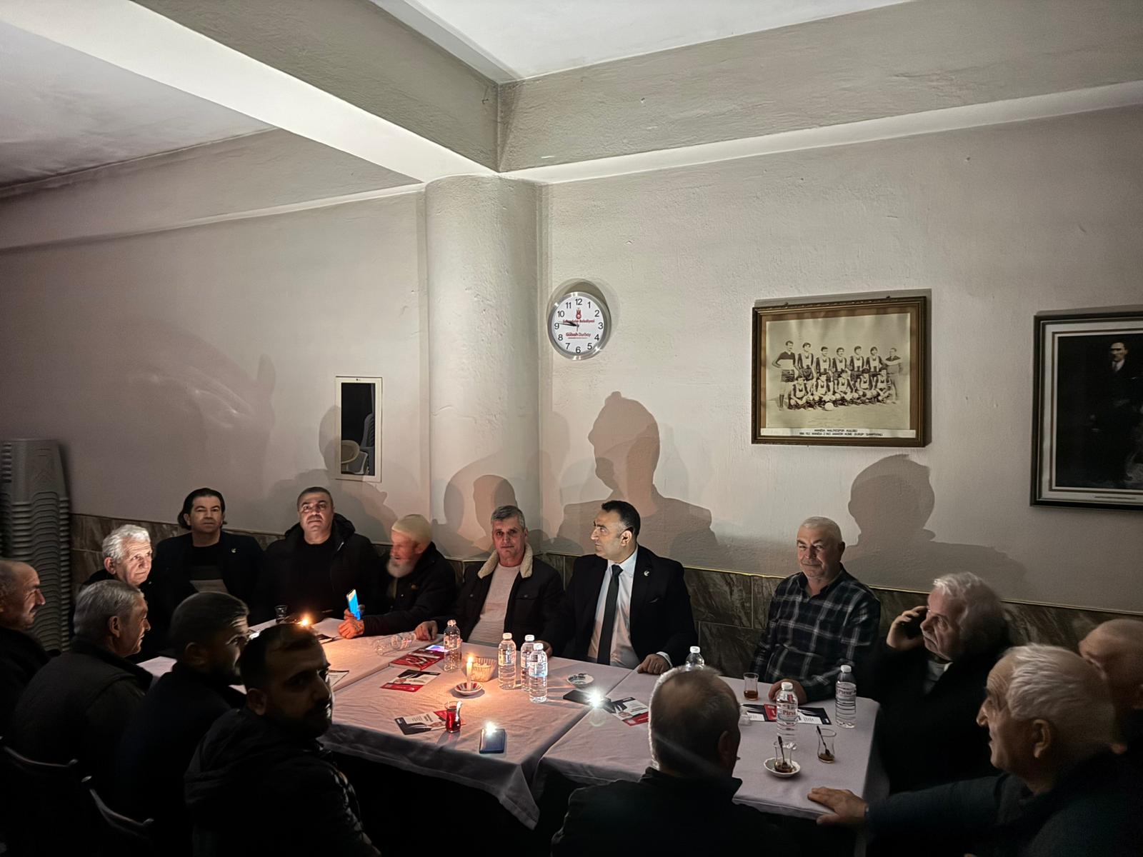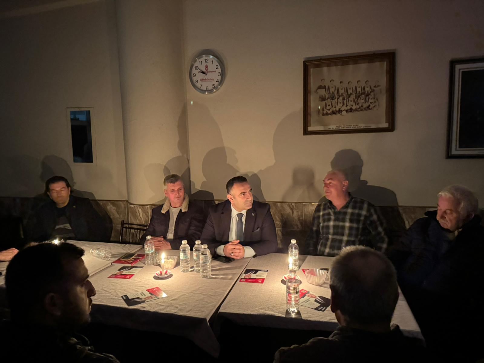 Ziyaretlere damga vuran olay ise Aşağıçobanisa’da yaşanan elektrik kesintisi oldu. Kesintiye rağmen programını iptal etmeyen Şahin, toplantıya mum ışığında devam ederek partisin çözüm projelerini anlattı.