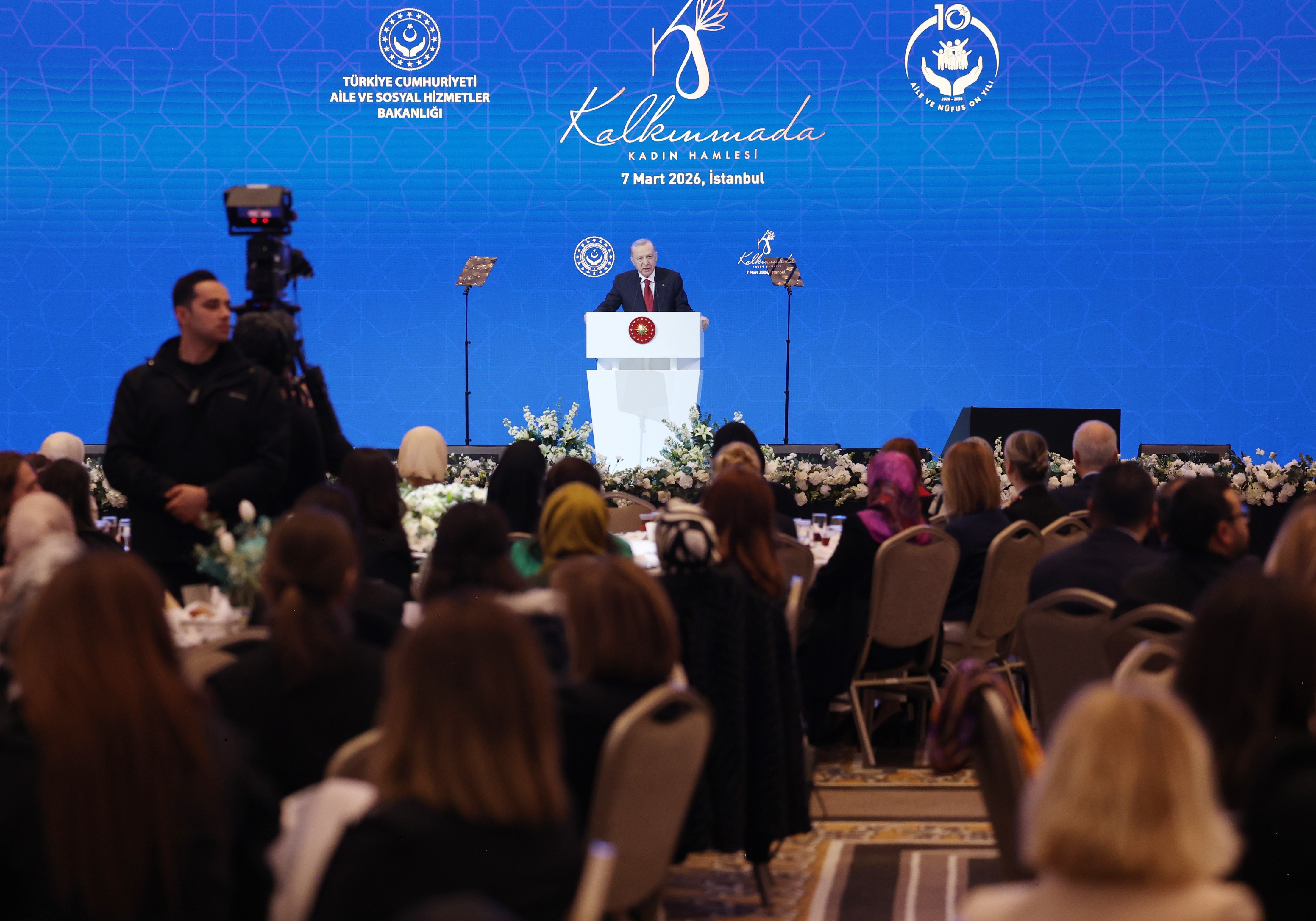 Şişli’de bir otelde gerçekleştirilen programa Cumhurbaşkanı Erdoğan’ın yanı sıra eşi Emine Erdoğan, TBMM Başkanı Numan Kurtulmuş, Aile ve Sosyal Hizmetler Bakanı Mahinur Özdemir Göktaş ve çok sayıda davetli katıldı.