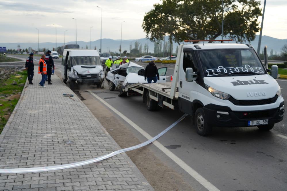 Alınan bilgilere göre, H.K. (30) idaresindeki 10 RE 157 plakalı minibüs, Havran istikametinden Edremit yönüne seyir halindeyken, kavşaktan dönüş yapan Kemal Hırca (56) yönetimindeki 10 ABP 010 plakalı otomobille çarpıştı.