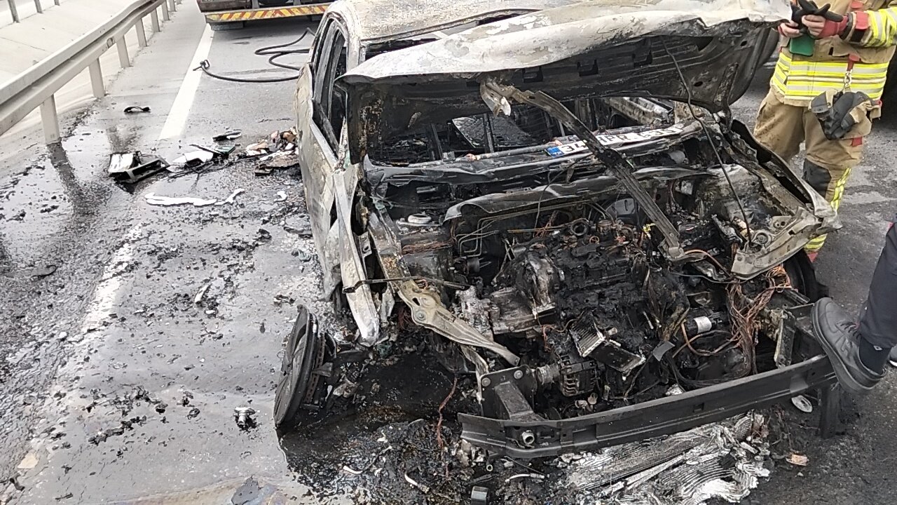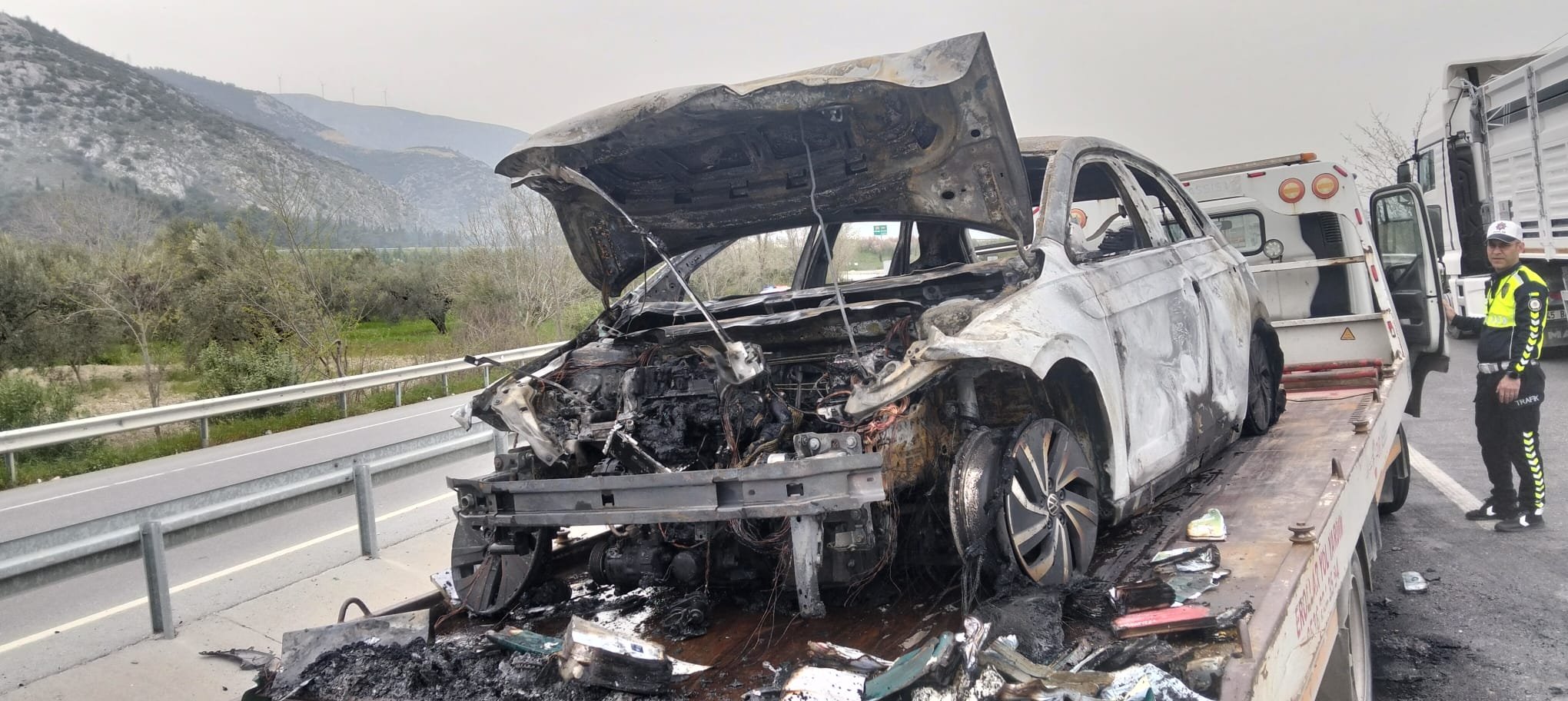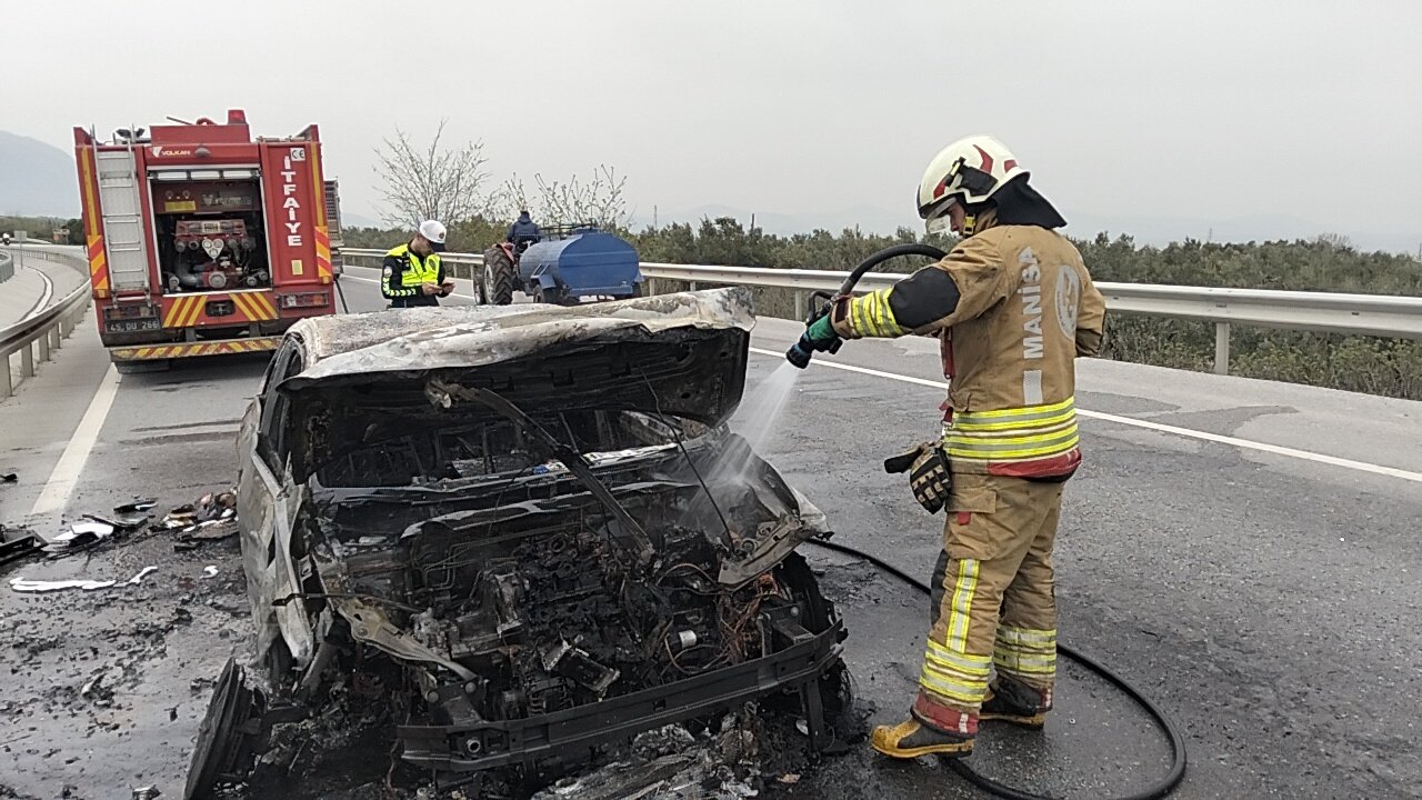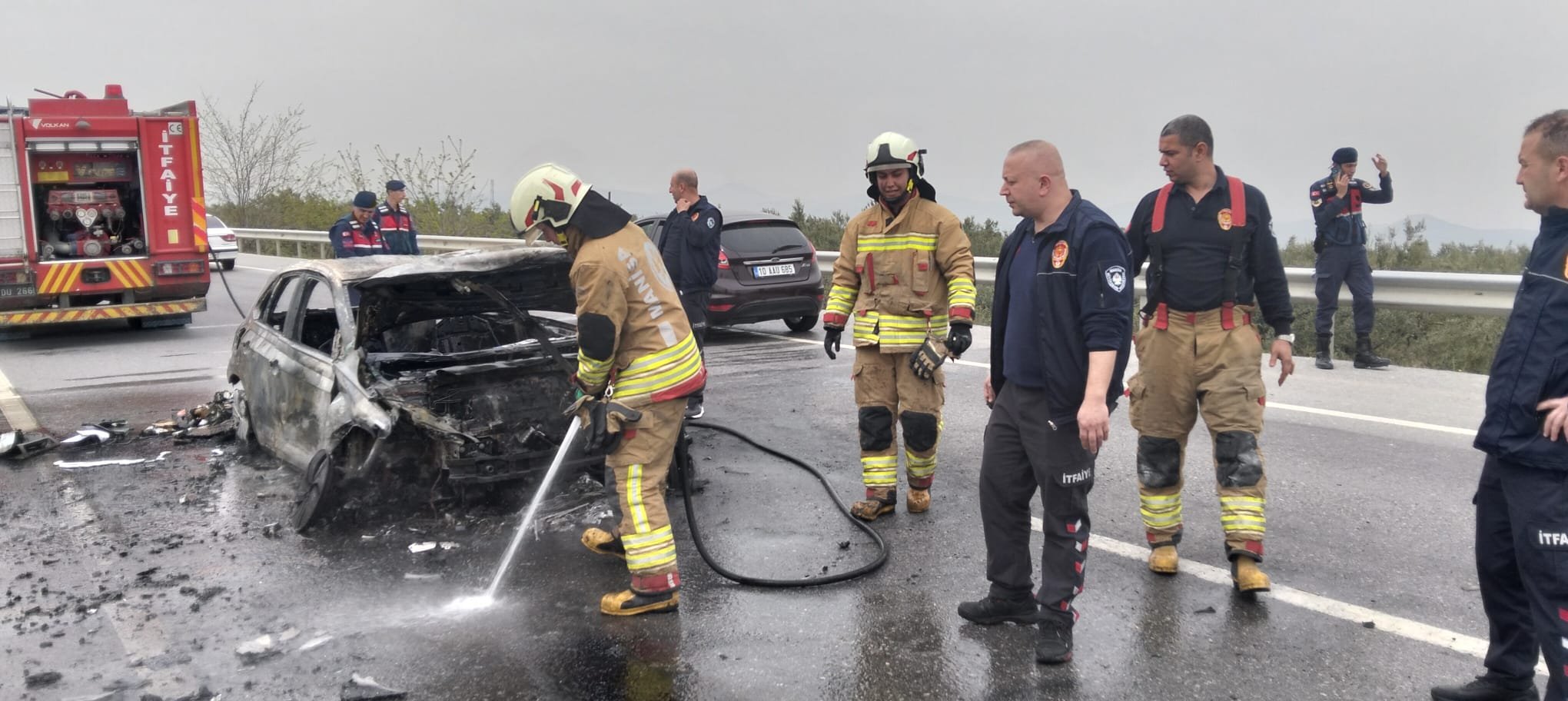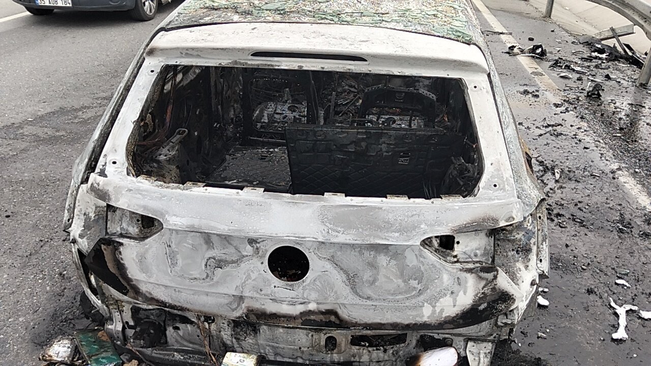Kısa sürede büyüyen yangın nedeniyle otomobil saniyeler içerisinde alev topuna dönerek kullanılamaz hale geldi.