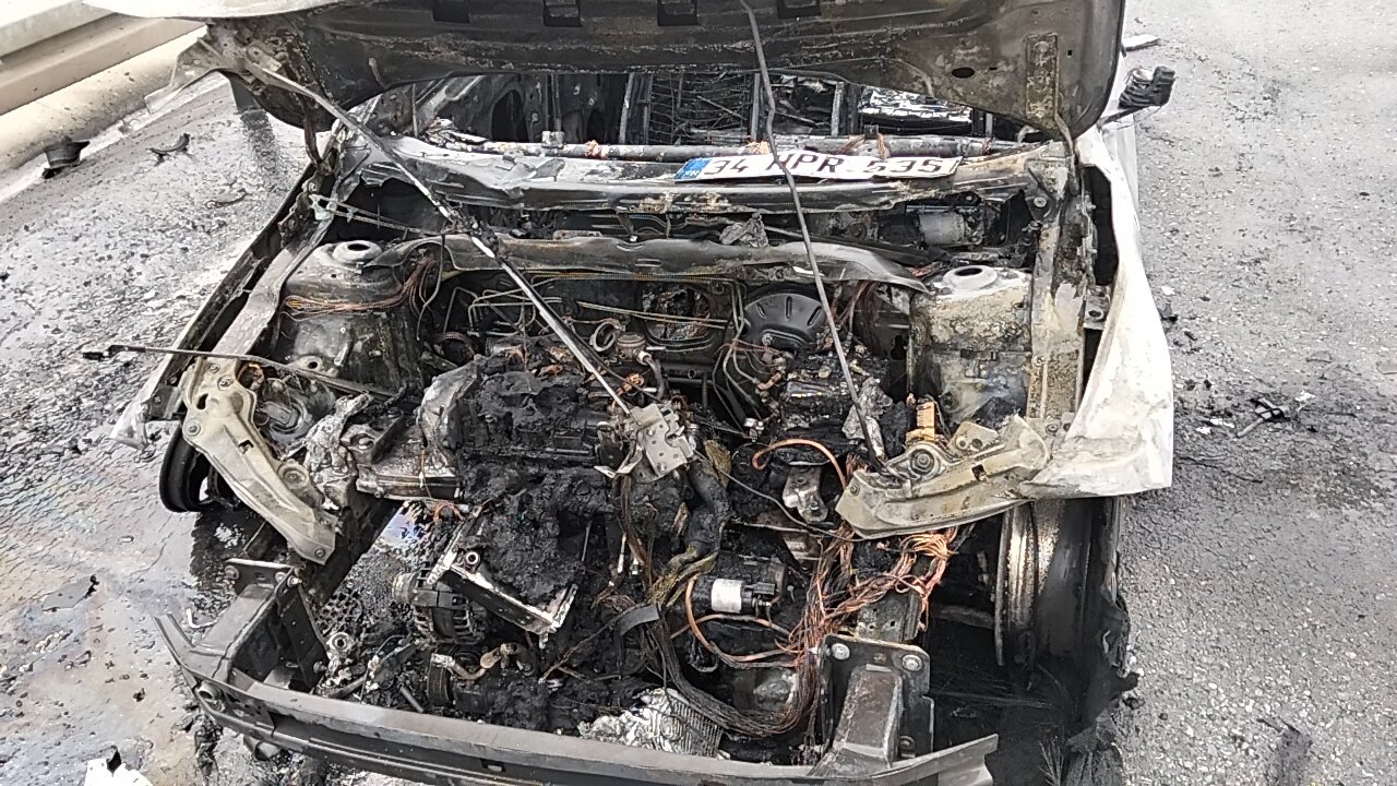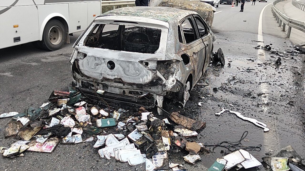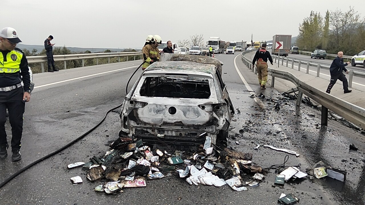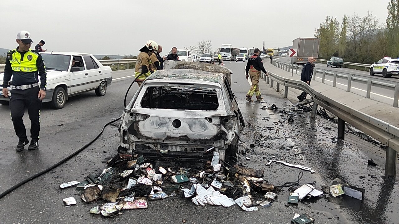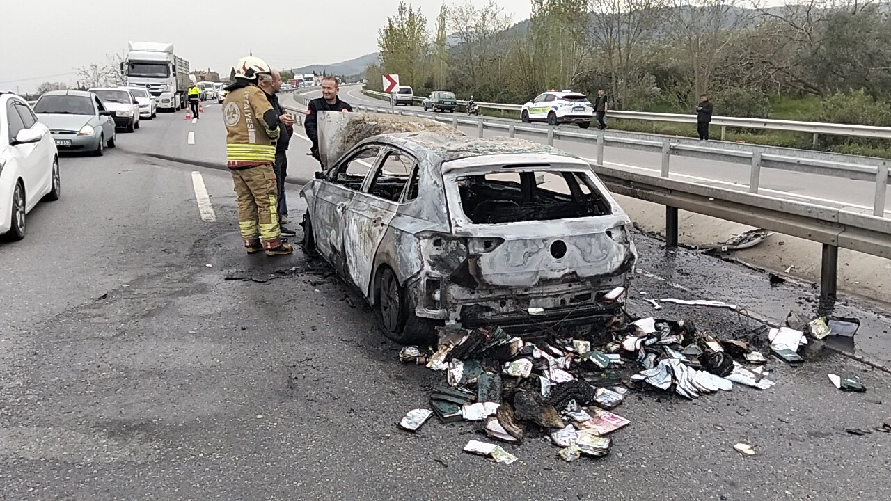 Kısa sürede büyüyen yangın nedeniyle otomobil saniyeler içerisinde alev topuna dönerek kullanılamaz hale geldi.