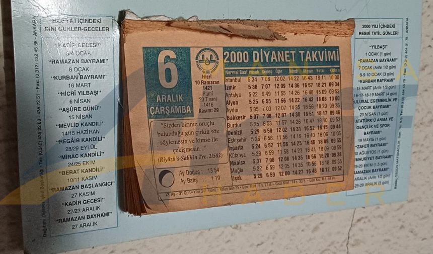 Caminin hem içi hem de dışı harabe görünümündeyken, bu sessizliğin en çarpıcı kanıtı ise harimin içindeki duvarda asılı kalan son takvim yaprağı oldu.