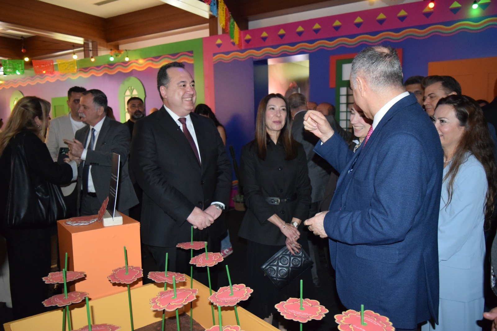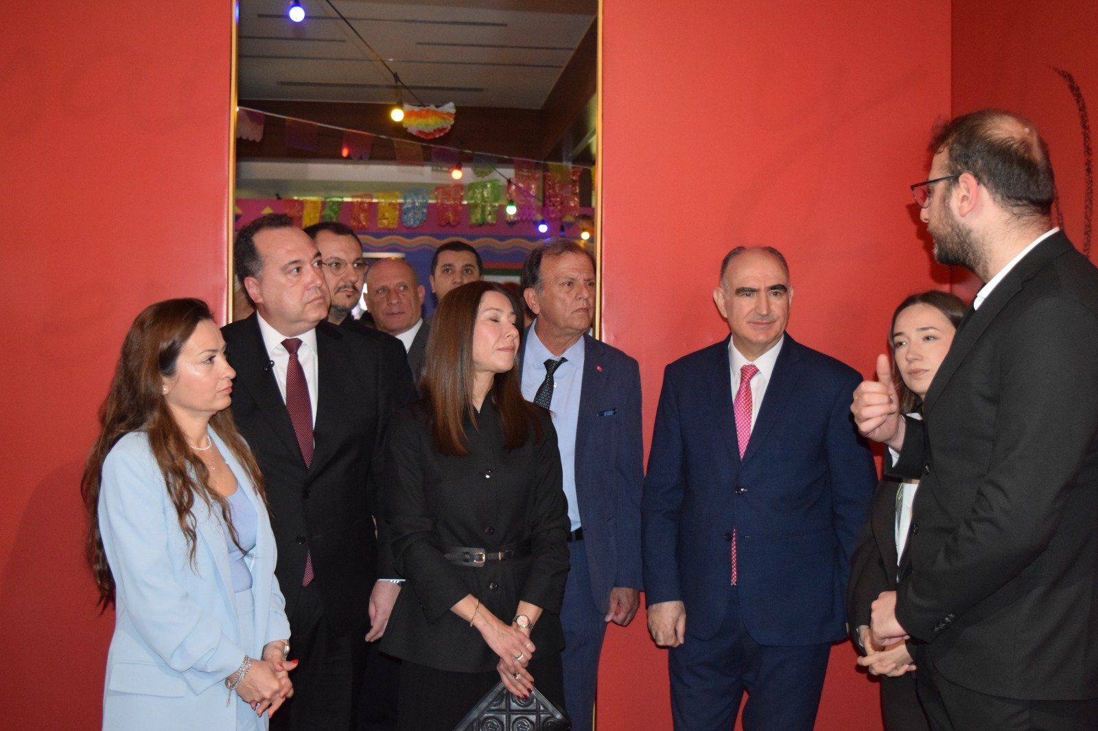 Frida Kahlo’nun yaşamından kesitler sunan eserleri inceleyen protokol üyeleri, yetkililerden serginin içeriği ve hazırlanış süreci hakkında bilgi aldı.