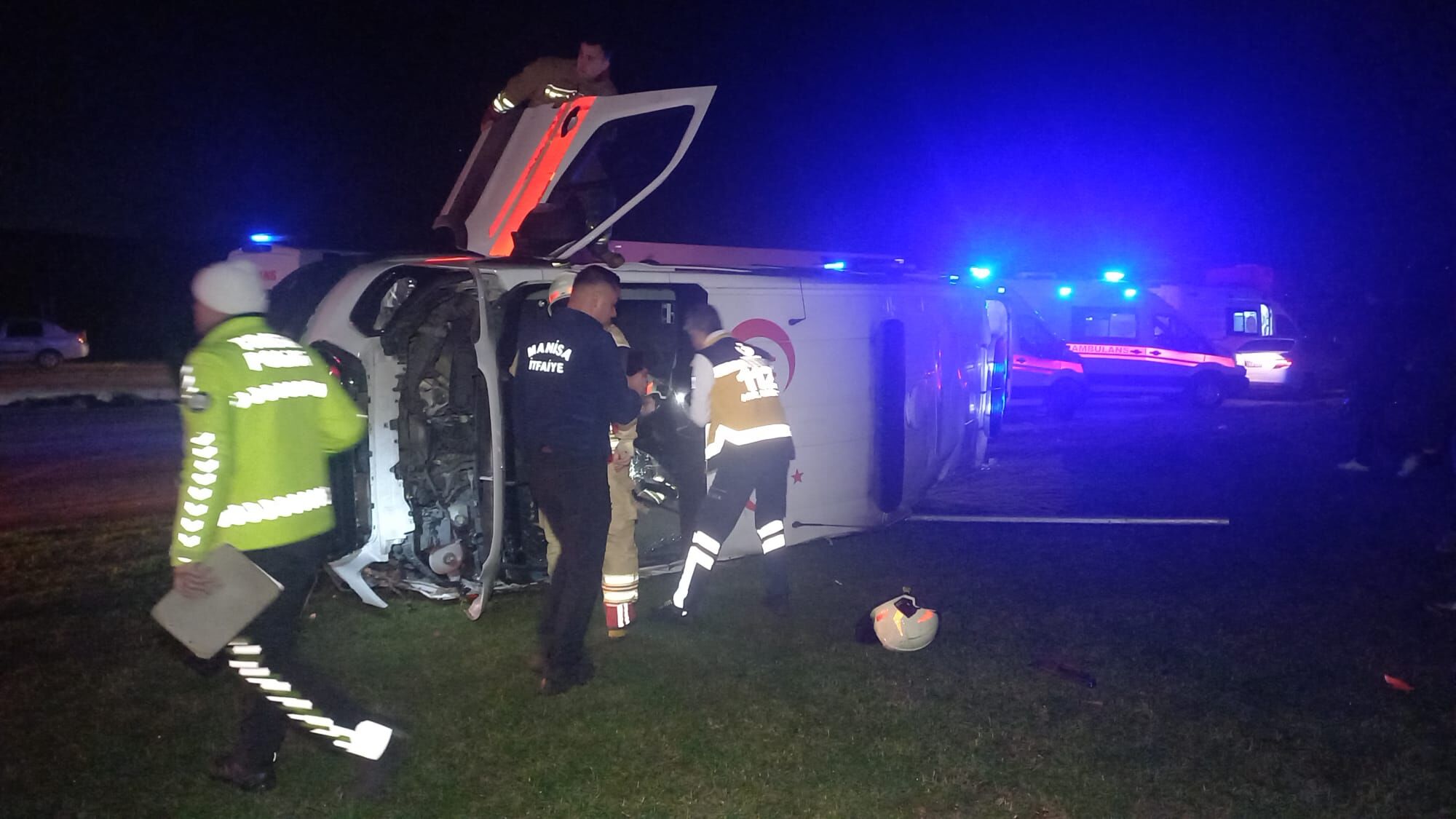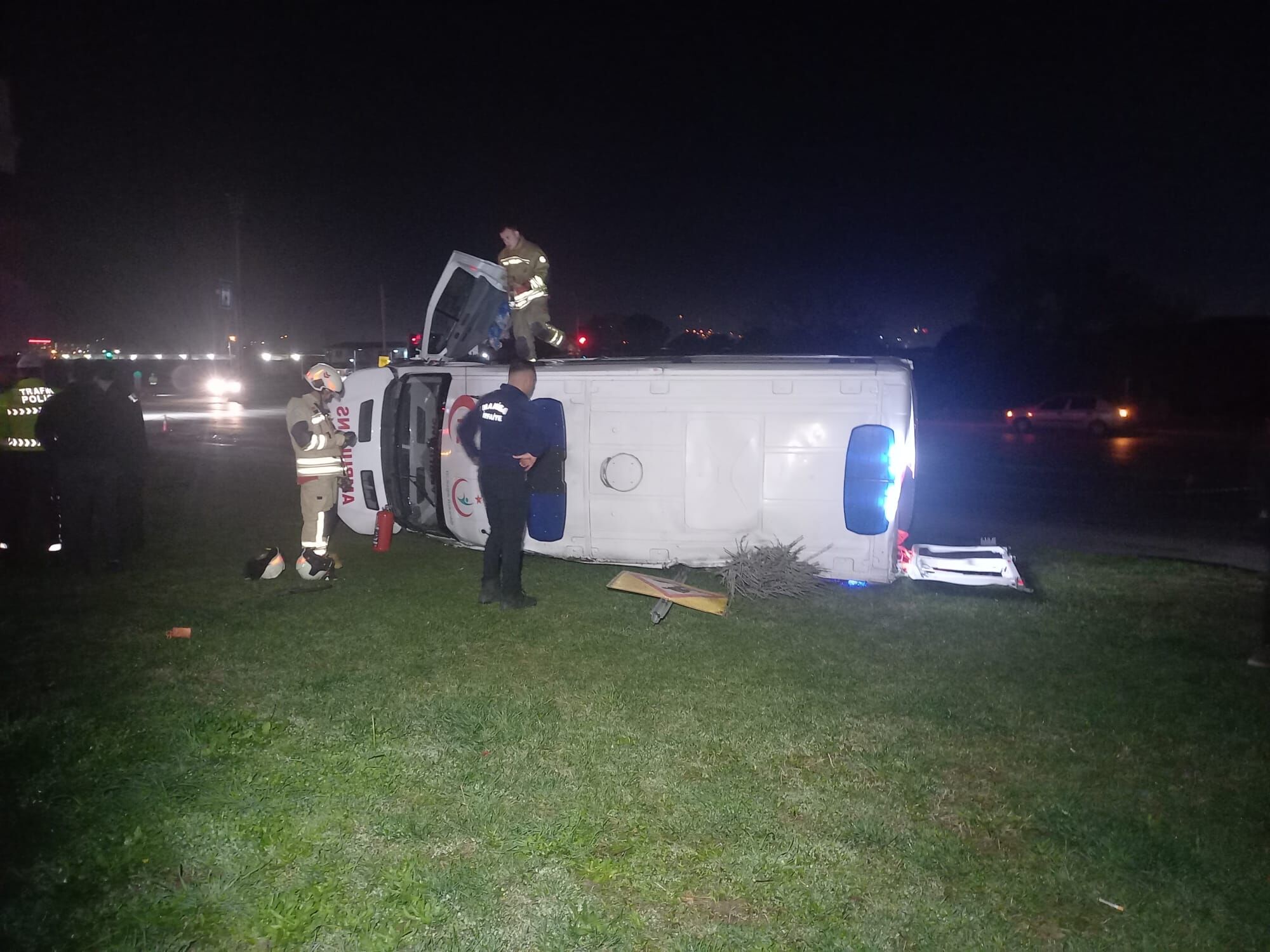 Kazada ambulans sürücüsü A.C., sağlık personelleri E.İ. ve A.M., otomobil sürücüsü F.A. ile ambulansta taşınan ve kimliği henüz belirlenemeyen hasta yaralandı.