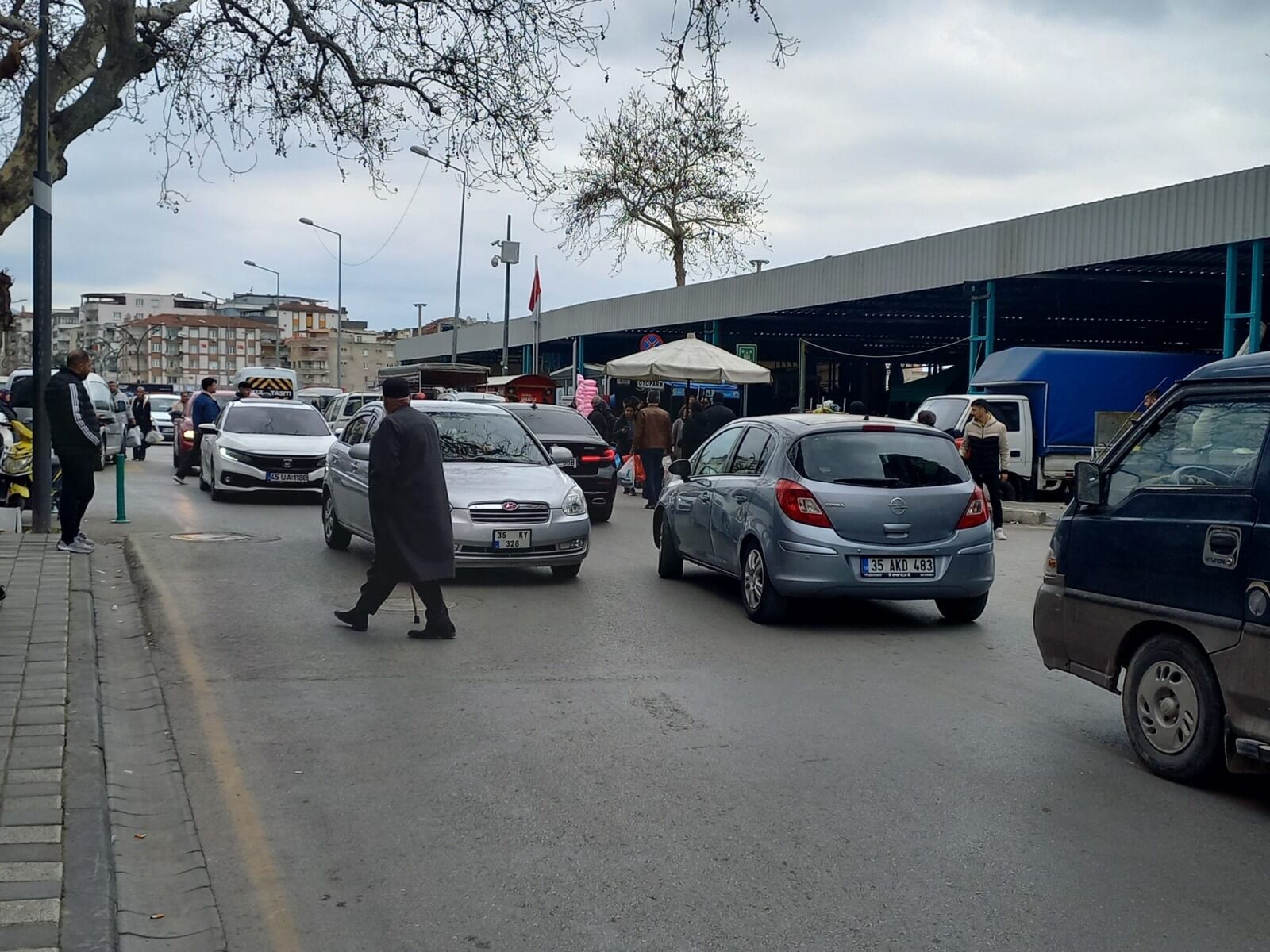 Trafik akışının tamamen durduğu noktalarda sürücüler ilerlemekte güçlük çekerken, trafik ekipleri kavşaklarda ve pazar çevresinde ulaşımı normale döndürmek için yoğun çaba sarf ediyor.