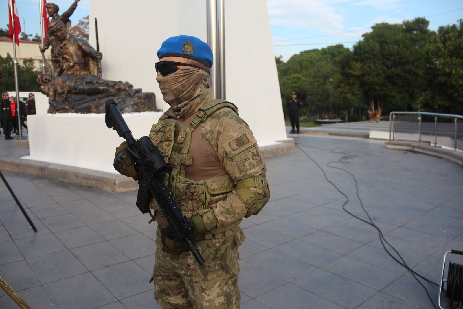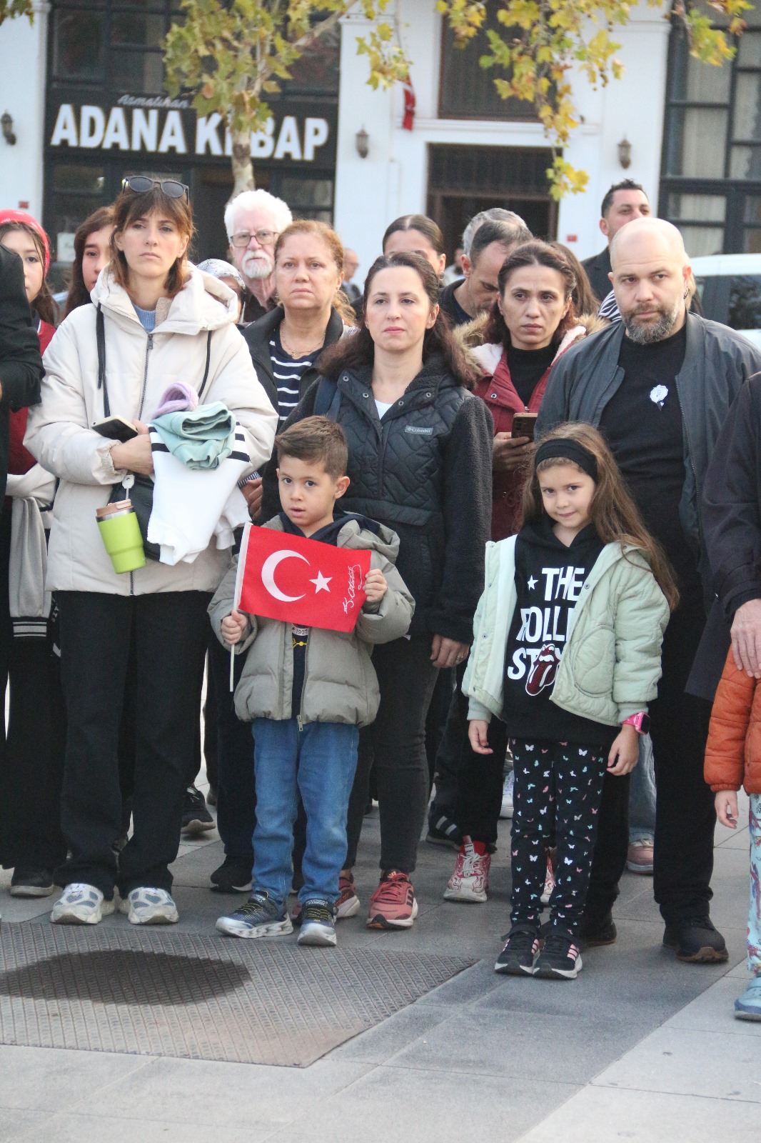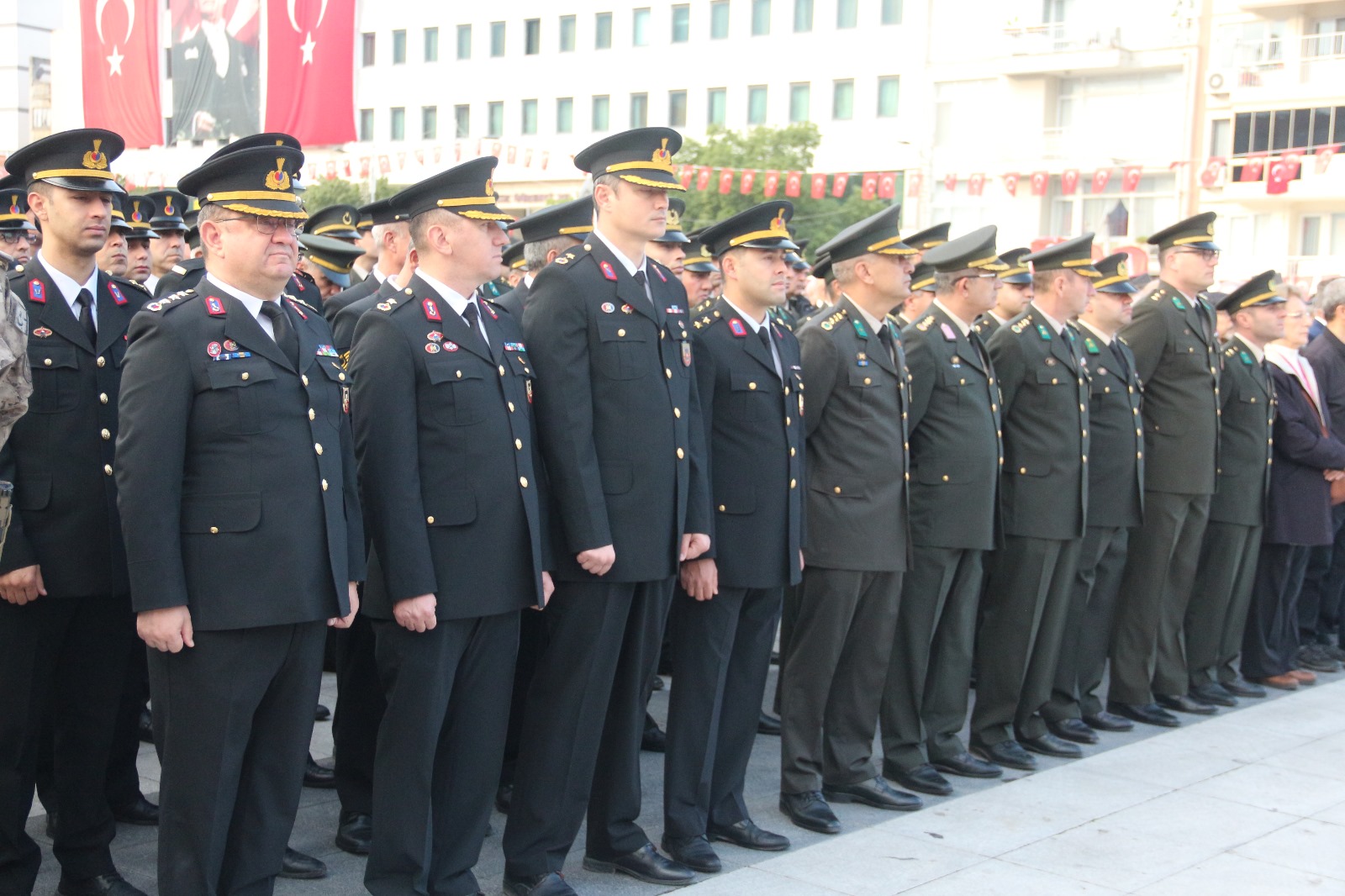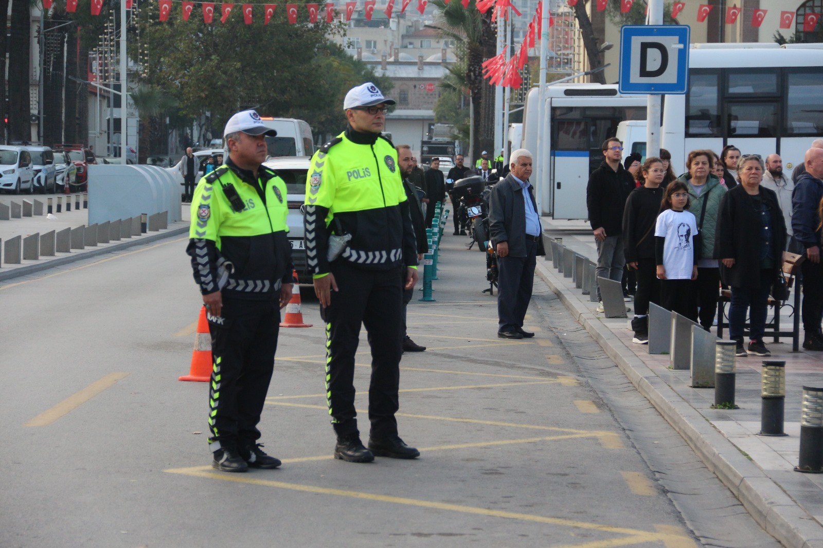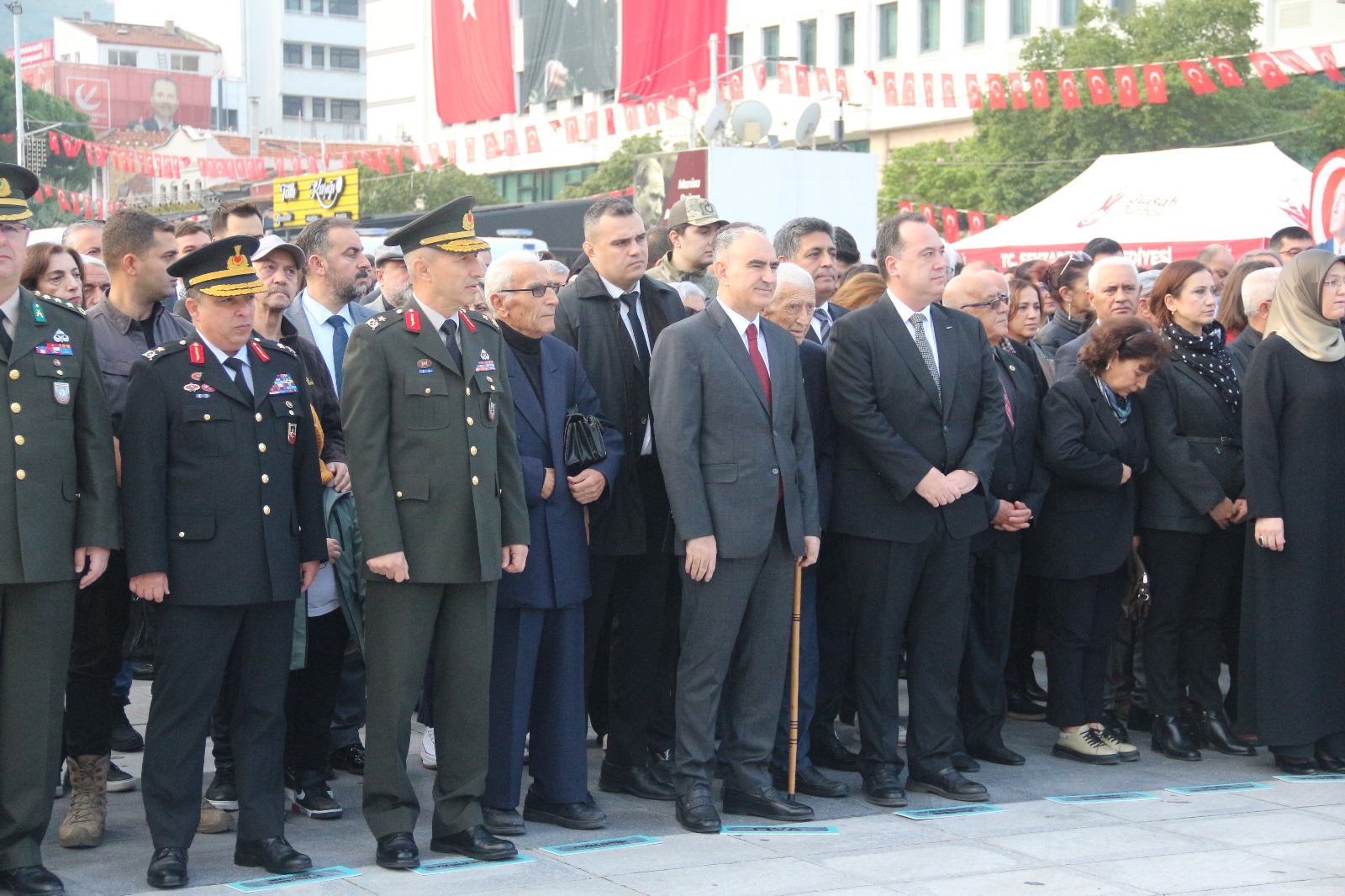 Cumhuriyet Meydanı Milli Egemenlik ve Atatürk Anıtına çelenk sunulmasıyla başlayan törende sirenlerin çalınmasıyla beraber kentte hayat adeta durdu.