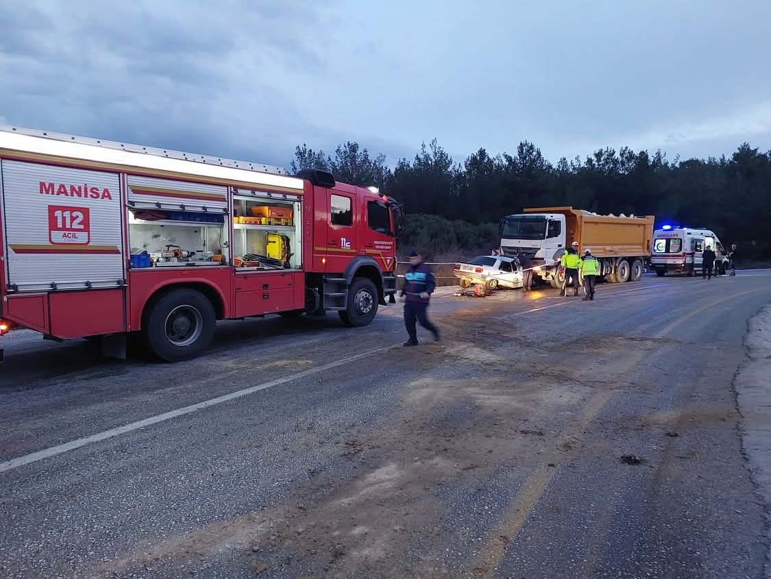 Alınan bilgiye göre, Akhisar ilçesi Çağlak mevkisinde henüz sürücülerinin kimliği belirlenemeyen hafriyat kamyonu ile otomobil çarpıştı.
