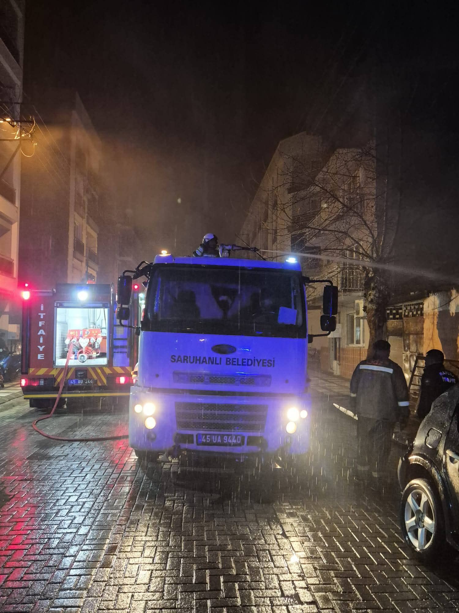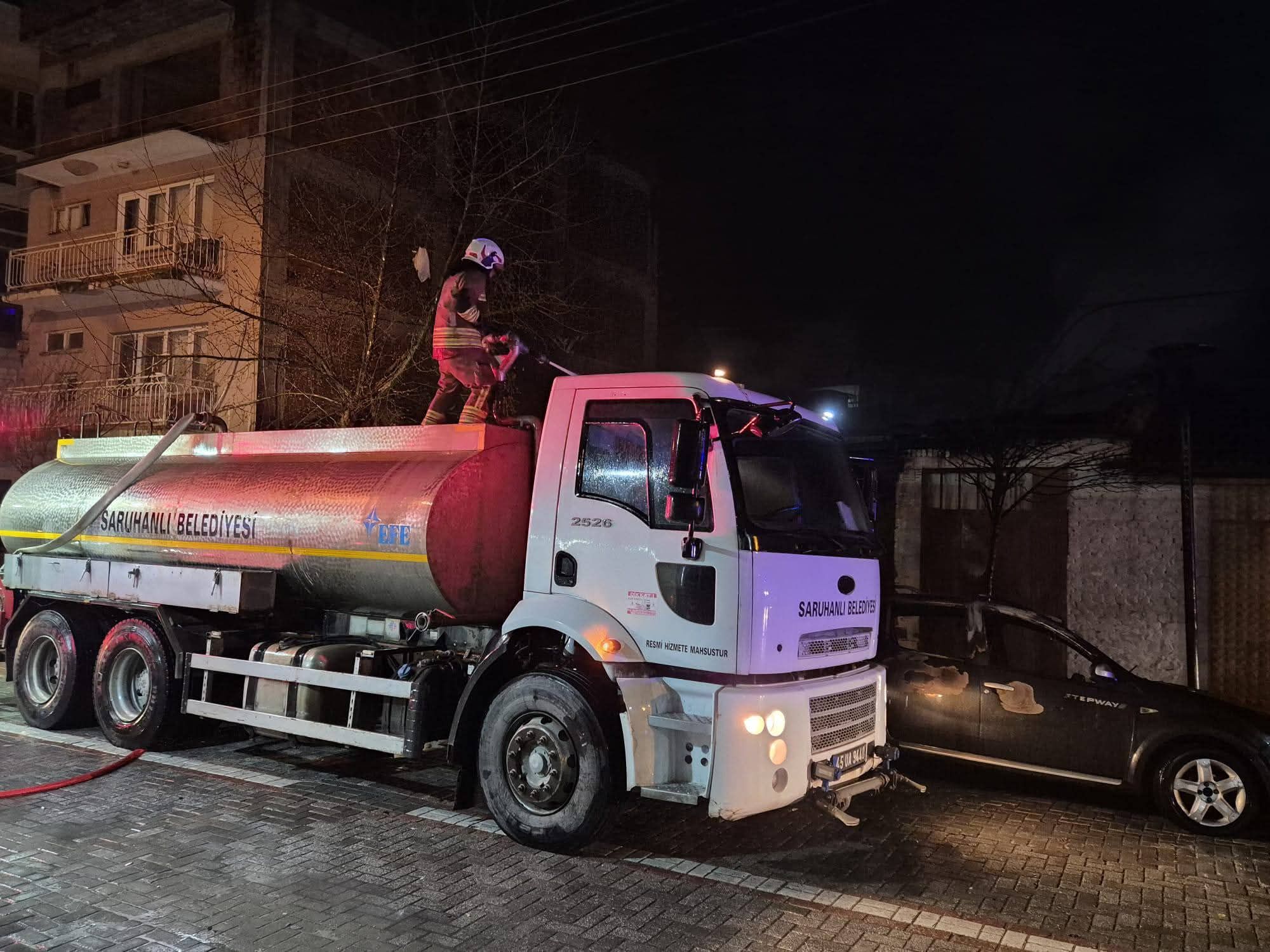 İhbar üzerine olay yerine Manisa Büyükşehir Belediyesi itfaiye ekipleri ile Saruhanlı Belediyesine ait su tankerleri ve iş makineleri sevk edildi.