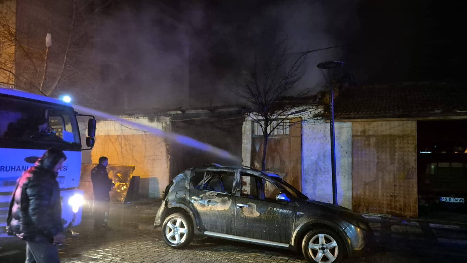 Yangında söz konusu ev ve yol kenarında bulunan araçlarda büyük çapta maddi hasar oluştu.