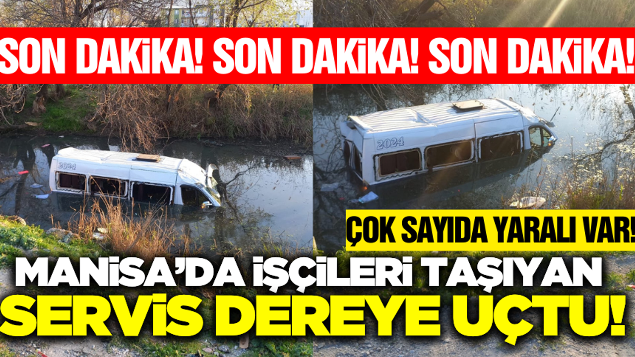 Manisa'nın Şehzadeler ilçesinde Manisa-Turgutlu karayolu üzerinde meydana geldi. Alınan bilgilere göre işçi taşıyan servis minibüsü kontrolden çıkarak su dolu dereye uçtu. Meydana gelen kazada çok sayıda yaralı olduğu bildirildi.