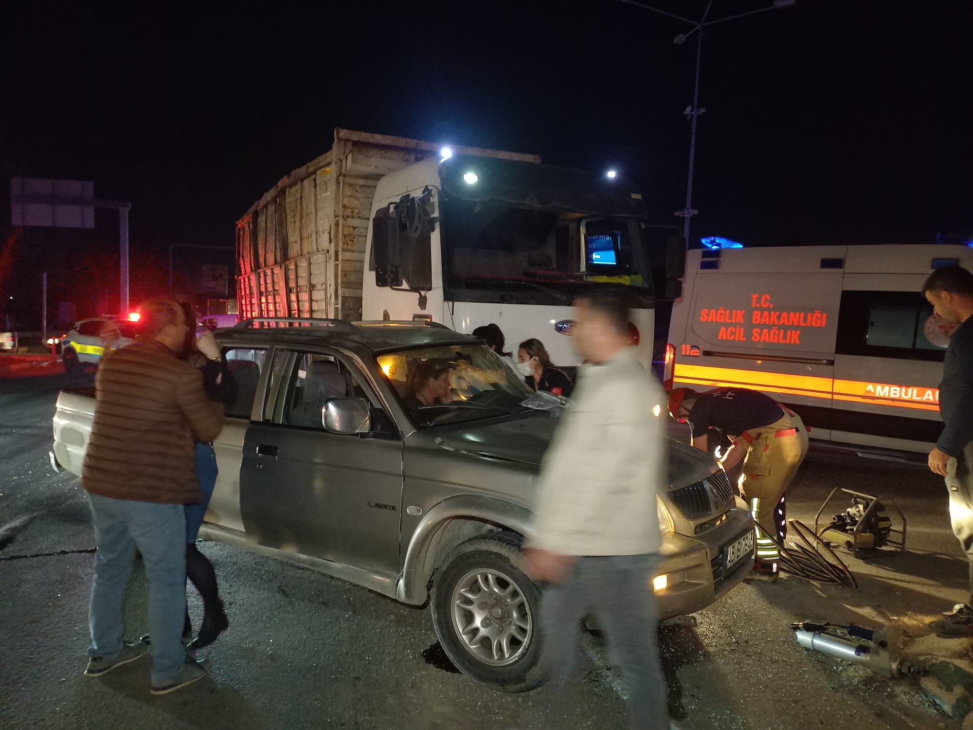 Alınan bilgiye göre, Zeynep Y'nin idaresindeki 45 S 7945 plakalı pikapla Ömer S'nin idaresindeki 45 HD 1351 plakalı kamyon Manisa- Saruhanlı Karayolu Saruhanlı kavşağında çarpıştı.