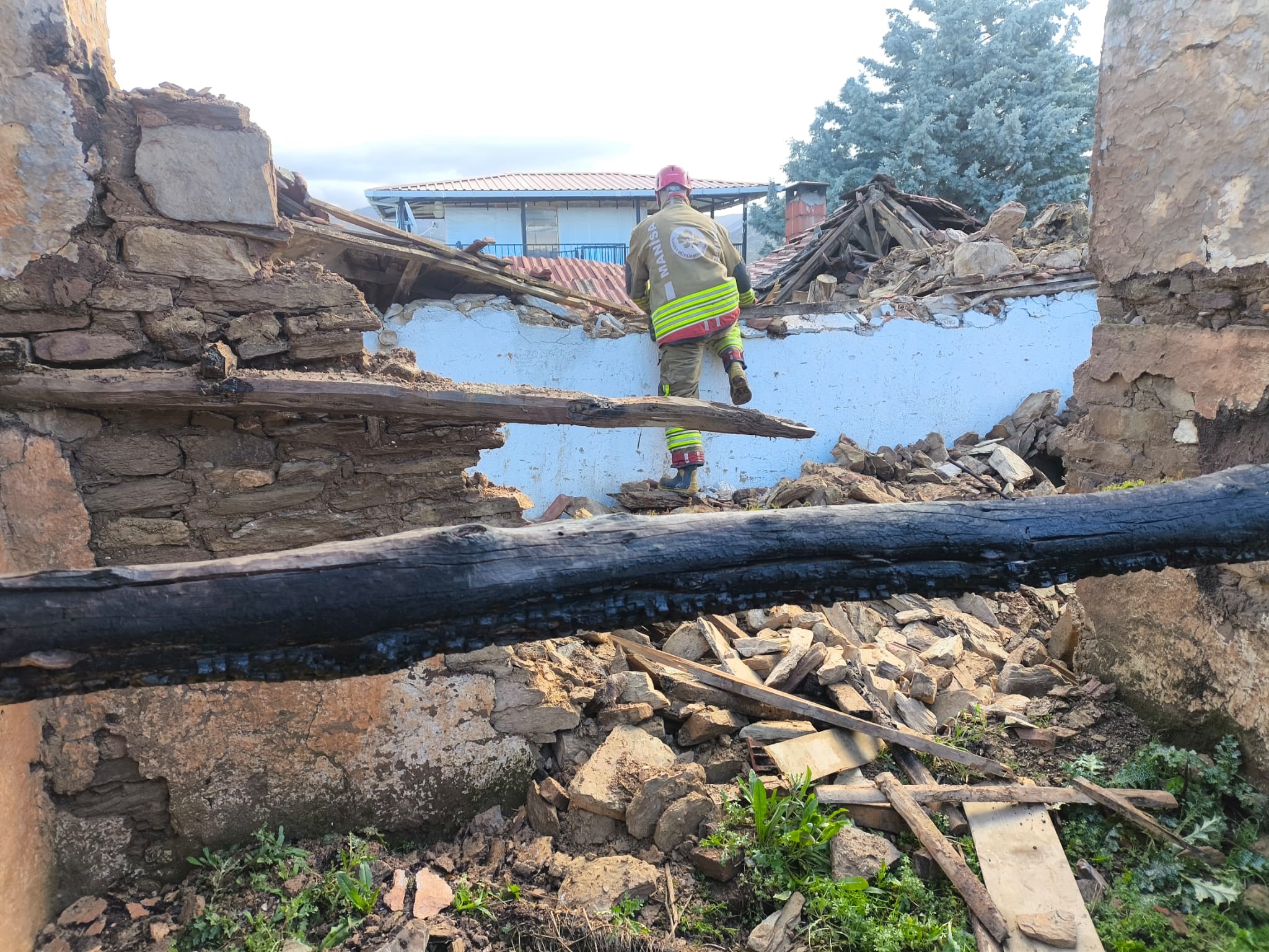 Çökme sırasında evin içinde bulunan Mesut Baytekin, göçük altında kaldı.