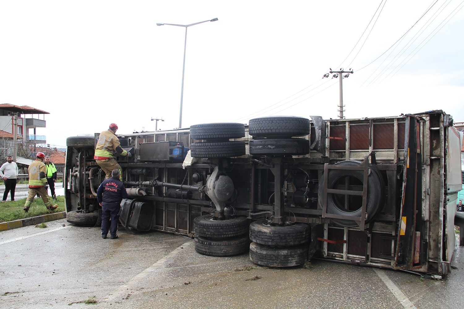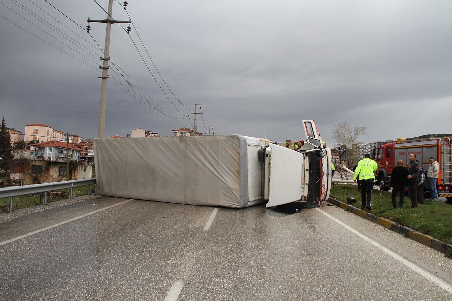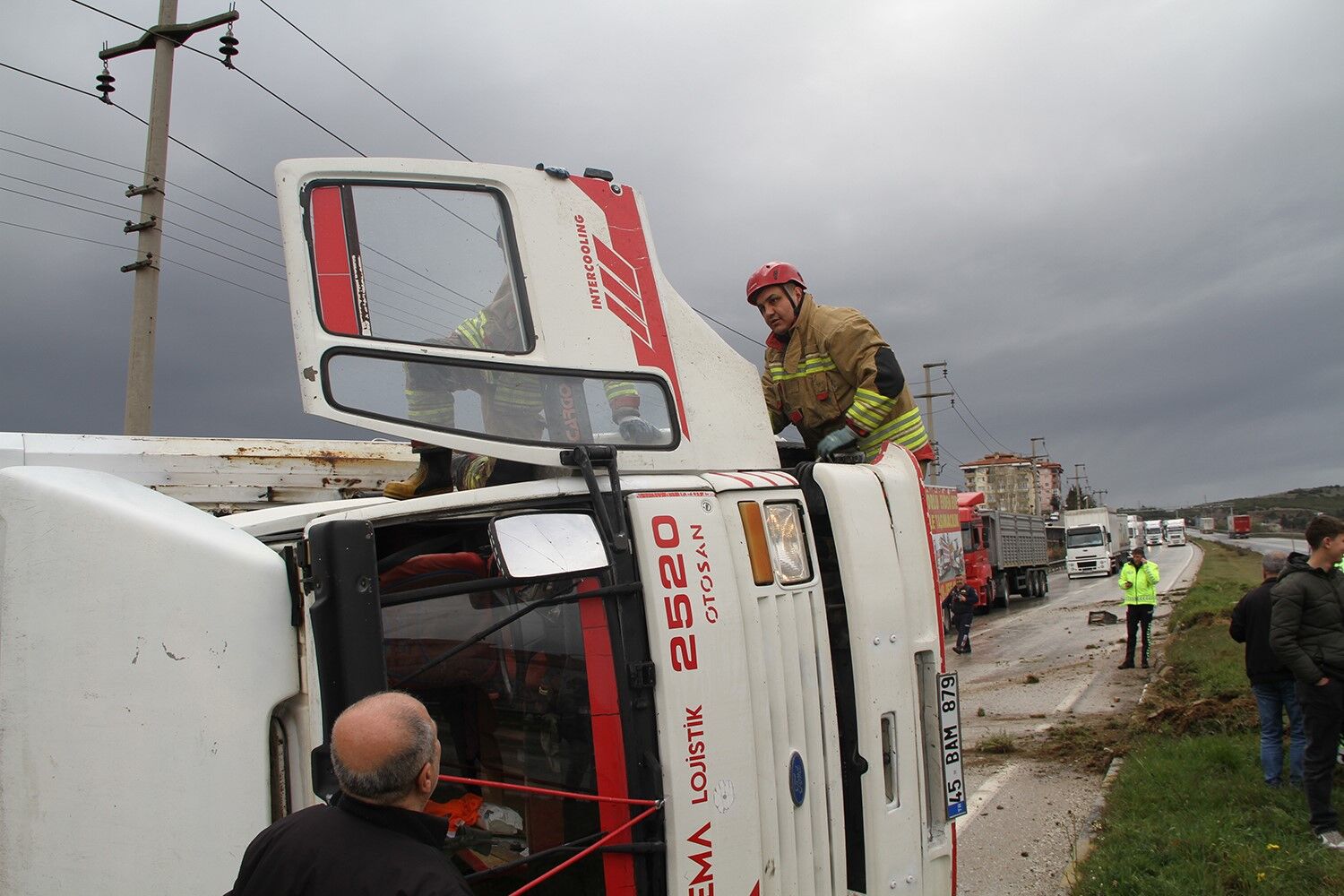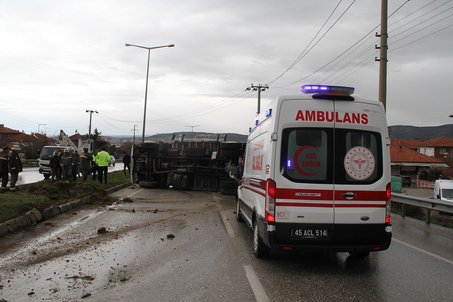 Edinilen bilgiye göre, Uşak istikametine seyir halinde olan Ümit İdem idaresindeki 45 BAM 879 plakalı kamyonet, yağışın etkisiyle kayganlaşan zeminde sürücüsünün direksiyon hakimiyetini kaybetmesi sonucu savrularak devrildi.