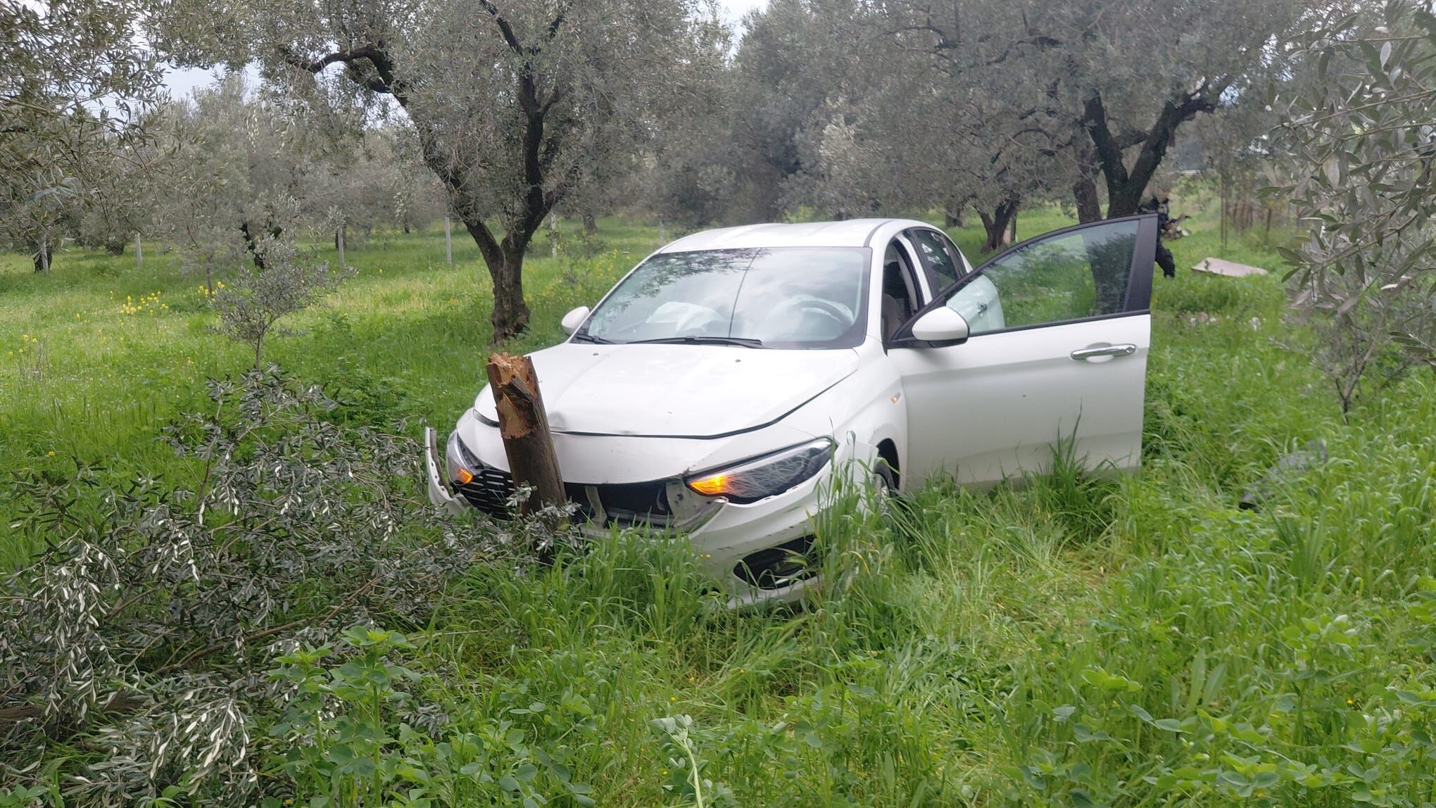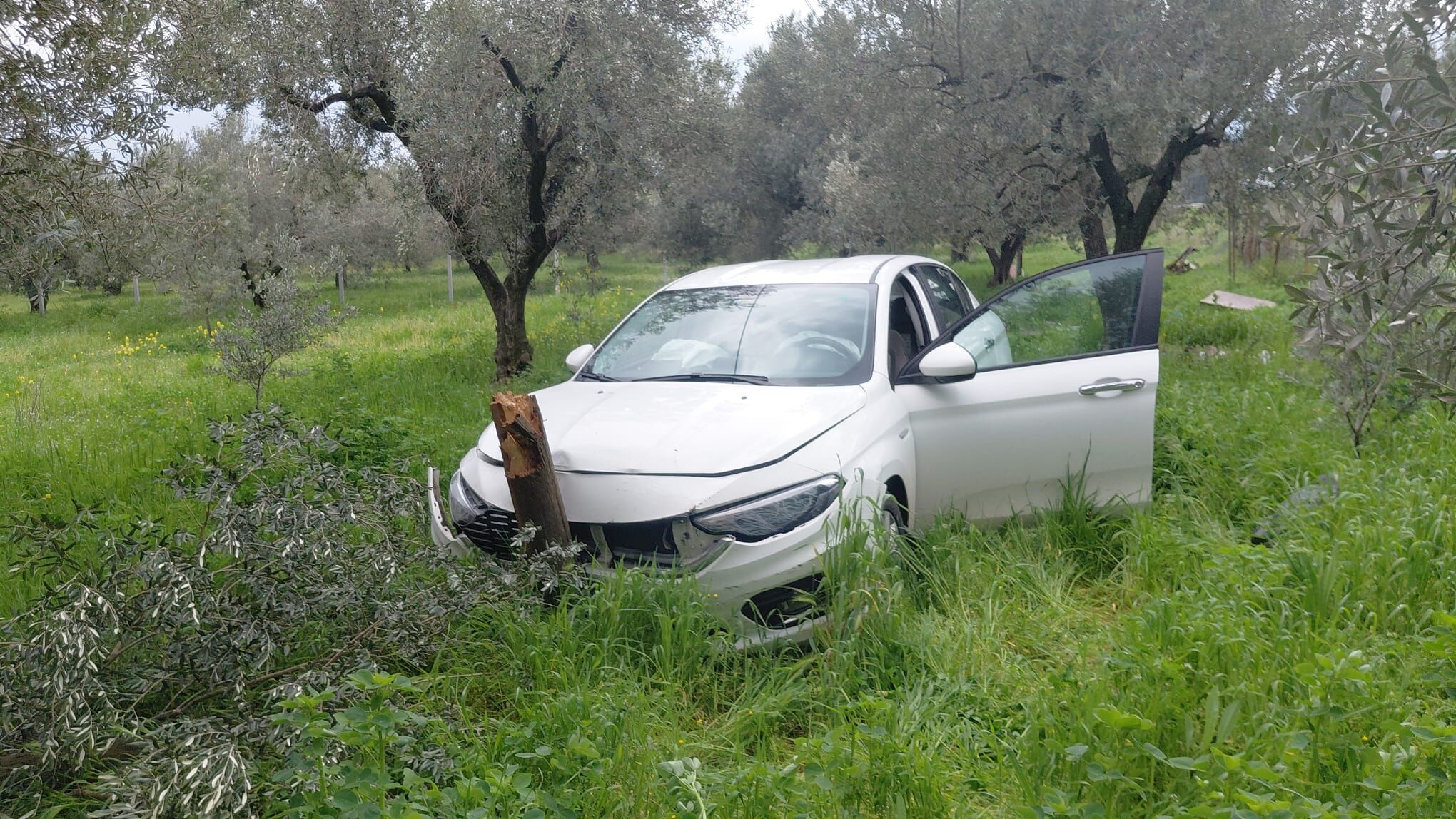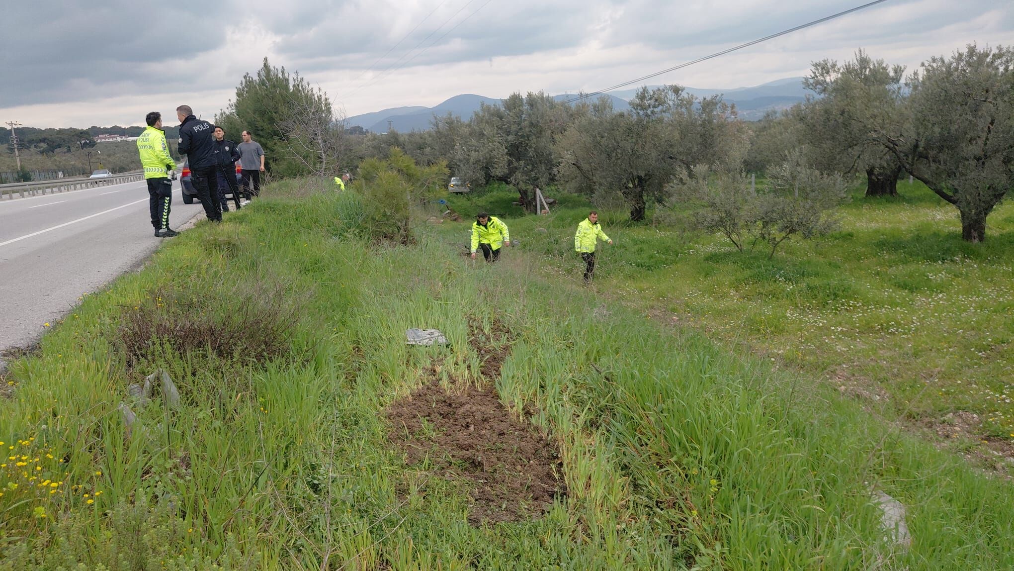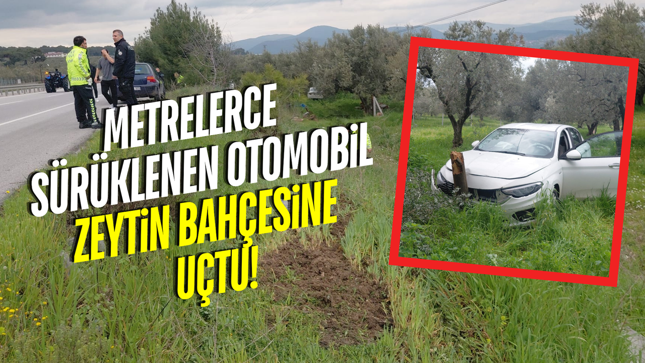 Yaklaşık 80 metre sürüklenen araç, yol kenarındaki zeytin bahçesine uçtu.