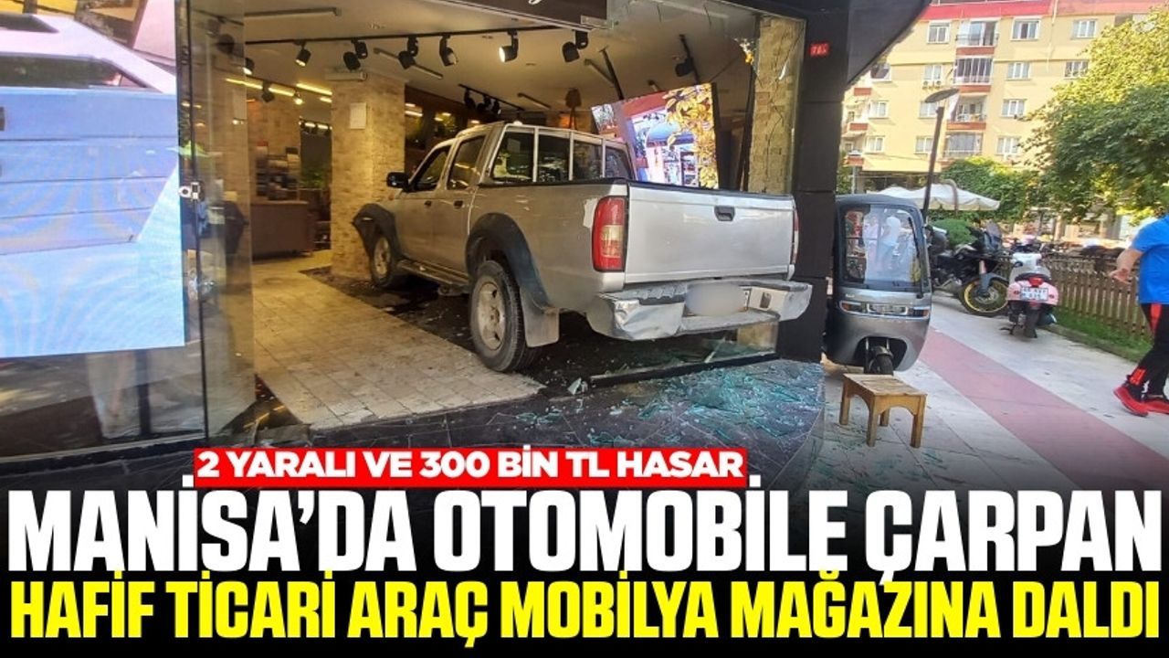 Çarpmanın etkisiyle direksiyon hakimiyetini kaybeden araç, yol kenarında bulunan bir mobilya mağazasına daldı.