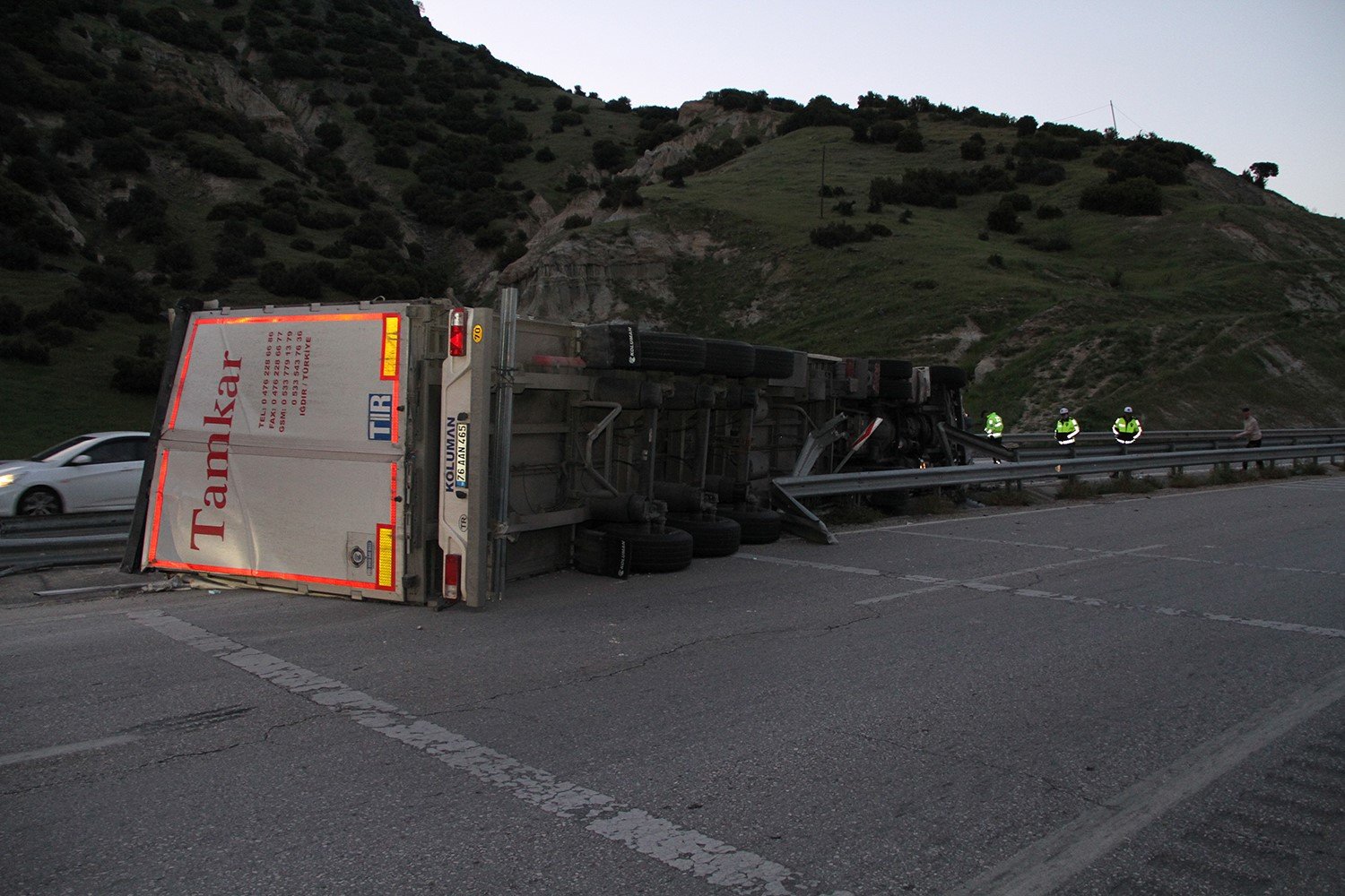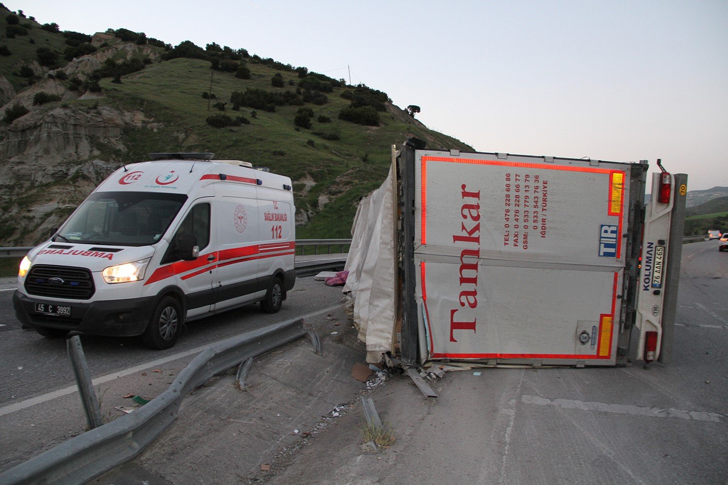 Alınan biliglere göre, İzmir'den Uşak yönüne seyir halinde olan Mehmet Murat K. (62) idaresindeki 76 AJ 328 plakalı tır, sürücüsünün direksiyon hakimiyetini kaybetmesi sonucu kontrolden çıktı.