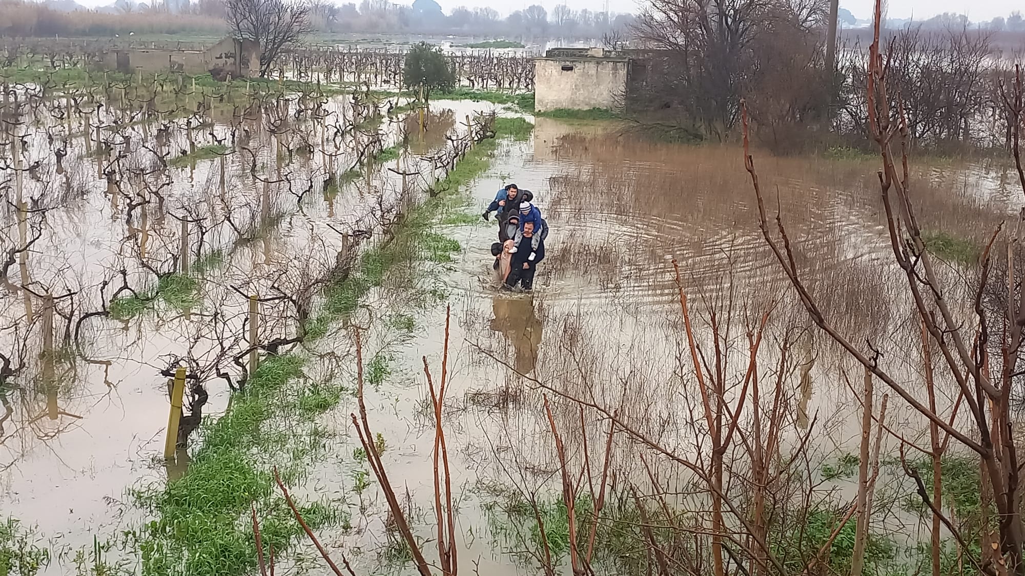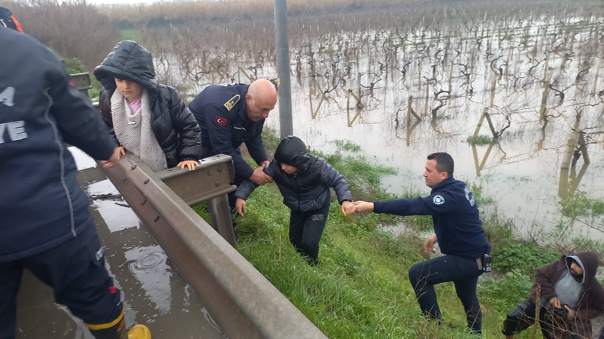 Bir bağ evinde konaklayan yabancı uyruklu baba ve 4 çocuğunun mahsur kaldığı ihbarı üzerine bölgeye çok sayıda ekip sevk edildi.