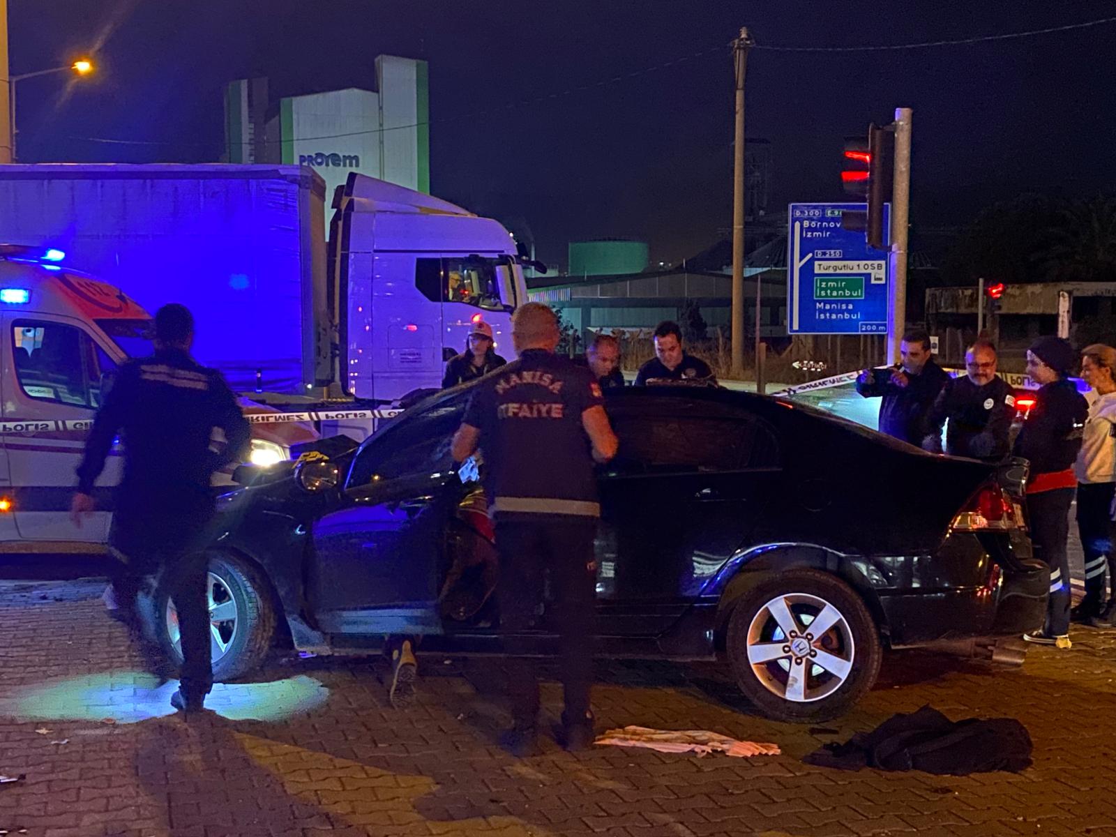 Edinilen bilgiye göre, İbrahim E. (21) yönetimindeki 45 ART 48x plakalı otomobil ile İbrahim D. (33) idaresindeki 09 ASD 23x plakalı Tır çarpıştı. Çarpışmanın şiddetiyle refüje çıkarak durabilen otomobil, kazanın ardından kullanılamaz hale geldi.