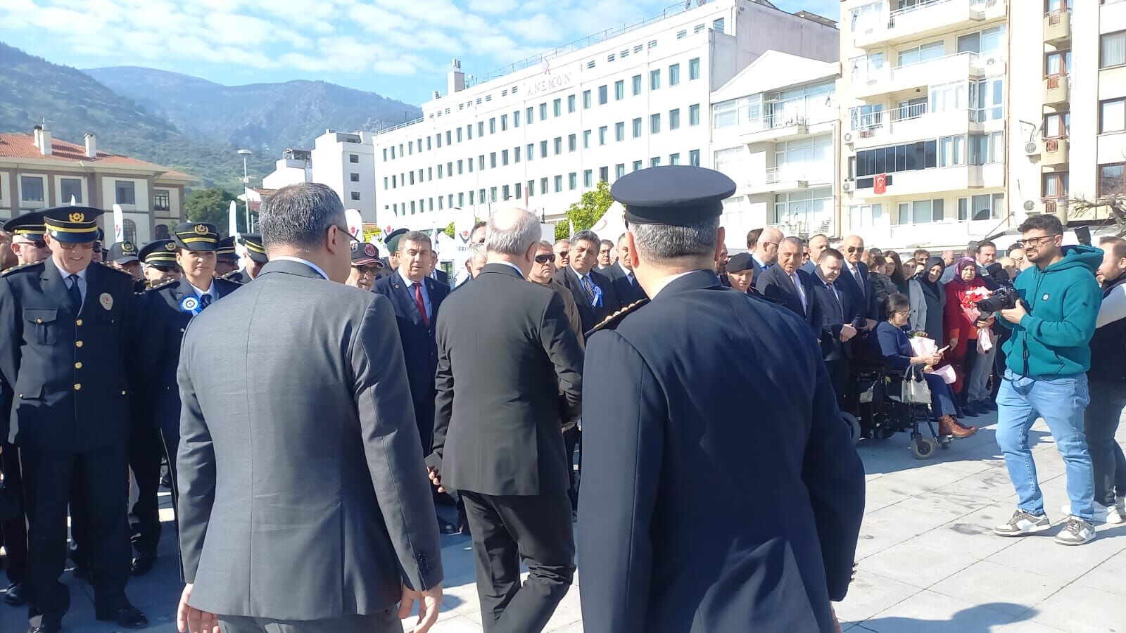Cumhuriyet Meydanı'ndaki Atatürk ve Milli Egemenlik Anıtı önünde gerçekleştirilen program, saygı duruşunda bulunulması ve İstiklal Marşı'nın okunmasıyla başladı.