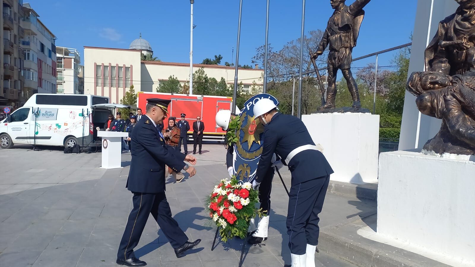 İl Emniyet Müdürü Fahri Aktaş'ın anıta çelenk sunmasının ardından tören konuşmalarla devam etti.