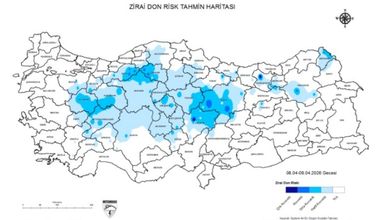 Doğu Karadeniz’in iç kesimleri ve Doğu Anadolu’nun kuzeyinde "orta" ve yer yer "kuvvetli" şiddette zirai donun etkili olacağı tahmin edilirken, yetkililer özellikle tarımsal faaliyetlerin devam ettiği bölgelerde oluşabilecek olumsuzluklara karşı uyardı.