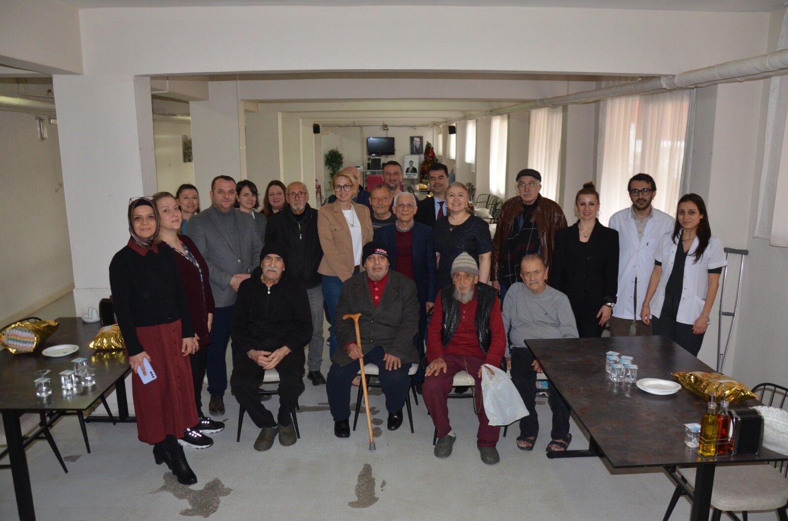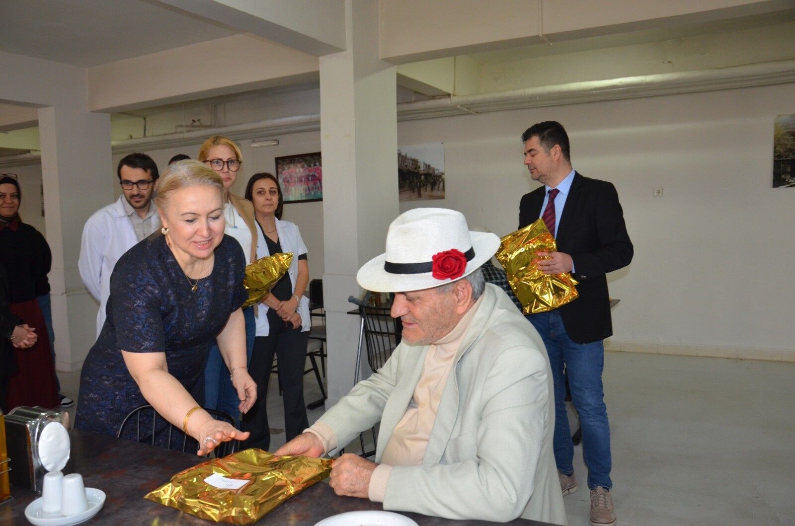 Ayrıca huzurevi yemekhanesinde erkek yaşlılarla bir araya gelen doktorlar, Yaşlılar Haftası'nı kutlayarak el emeği hediyeleri dağıttı.